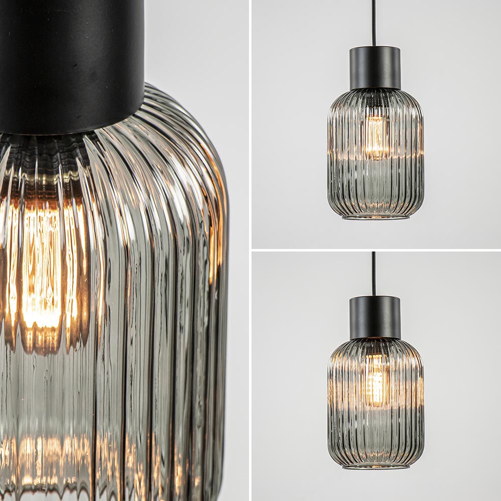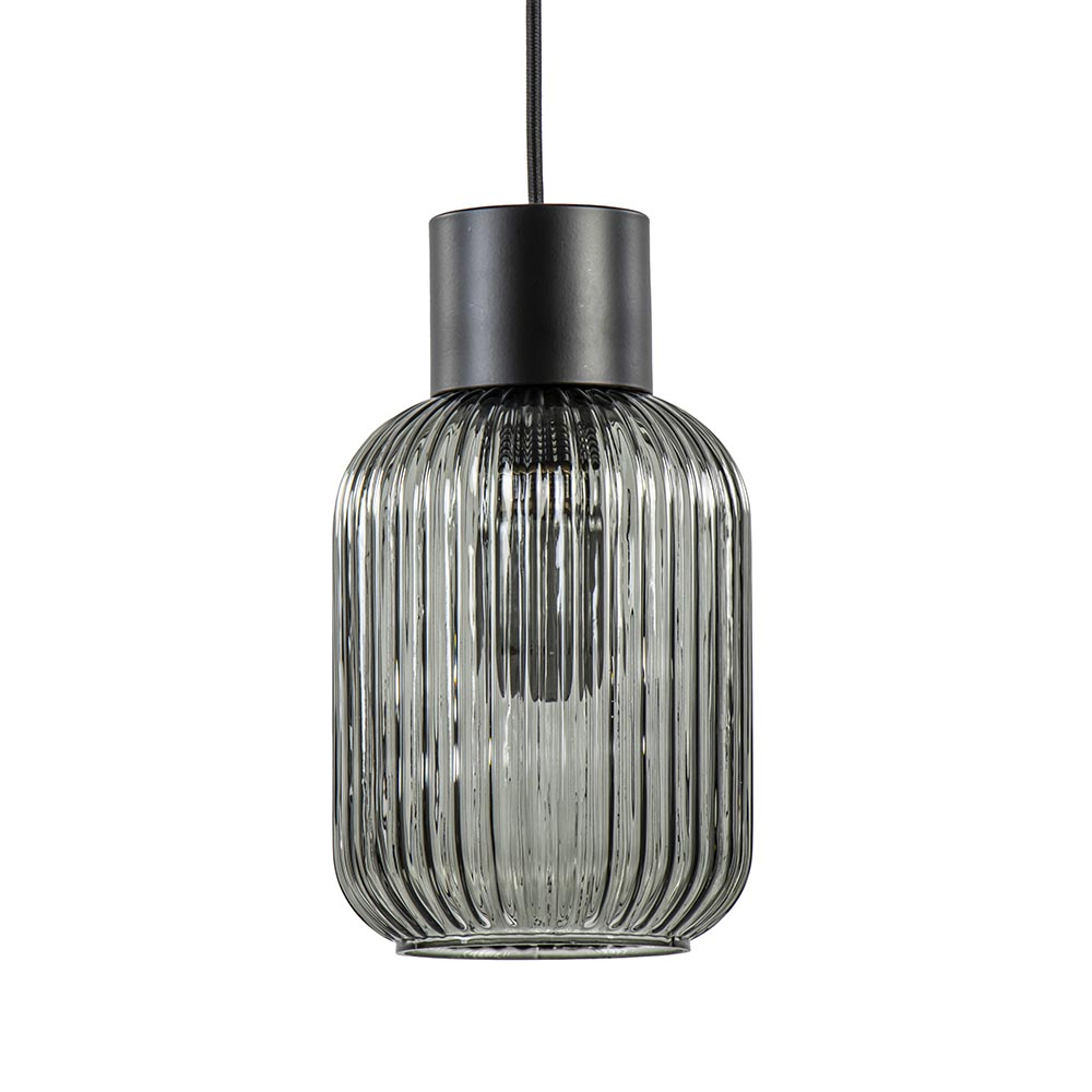 Homepagina / Lampen / Hanglampen / 1-Lichts hanglamp zwart met smoke glazen cilinder