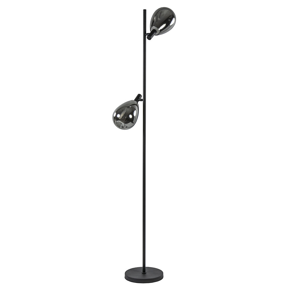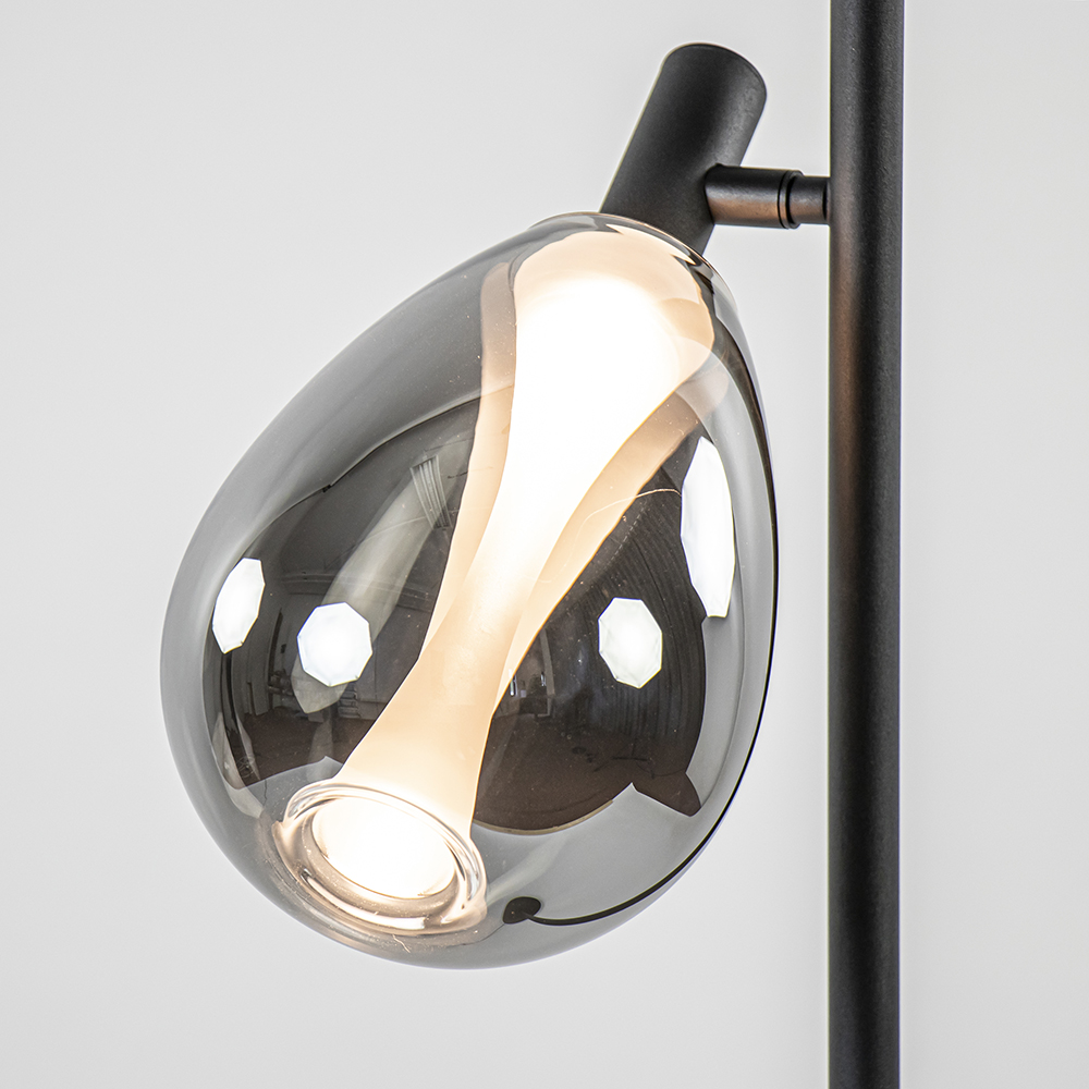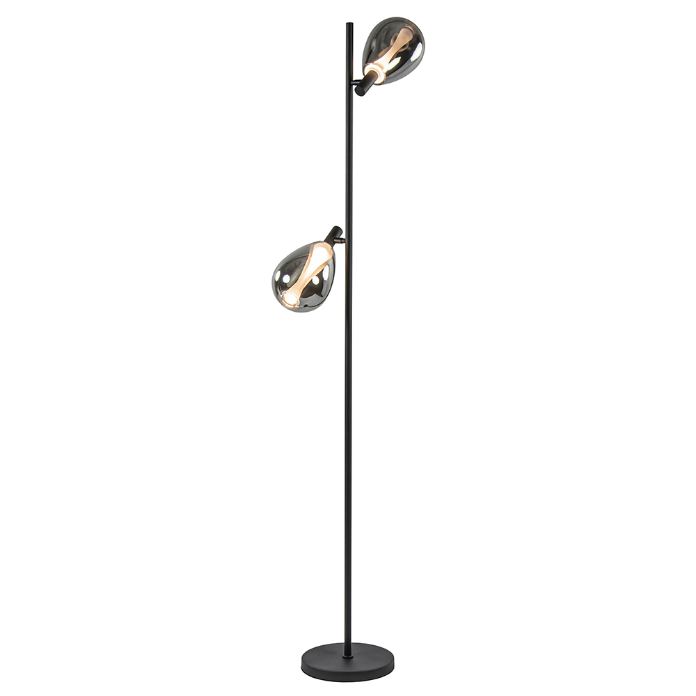 – afm: Ø28×170 cm – voet: Ø25×3 cm – kappen: Ø14×27 cm – metaal, mat zwart – smoke glas – inclusief LED – 2700 Kelvin – 1360 lumen – dimbaar – inclusief dimmer – zwart snoer