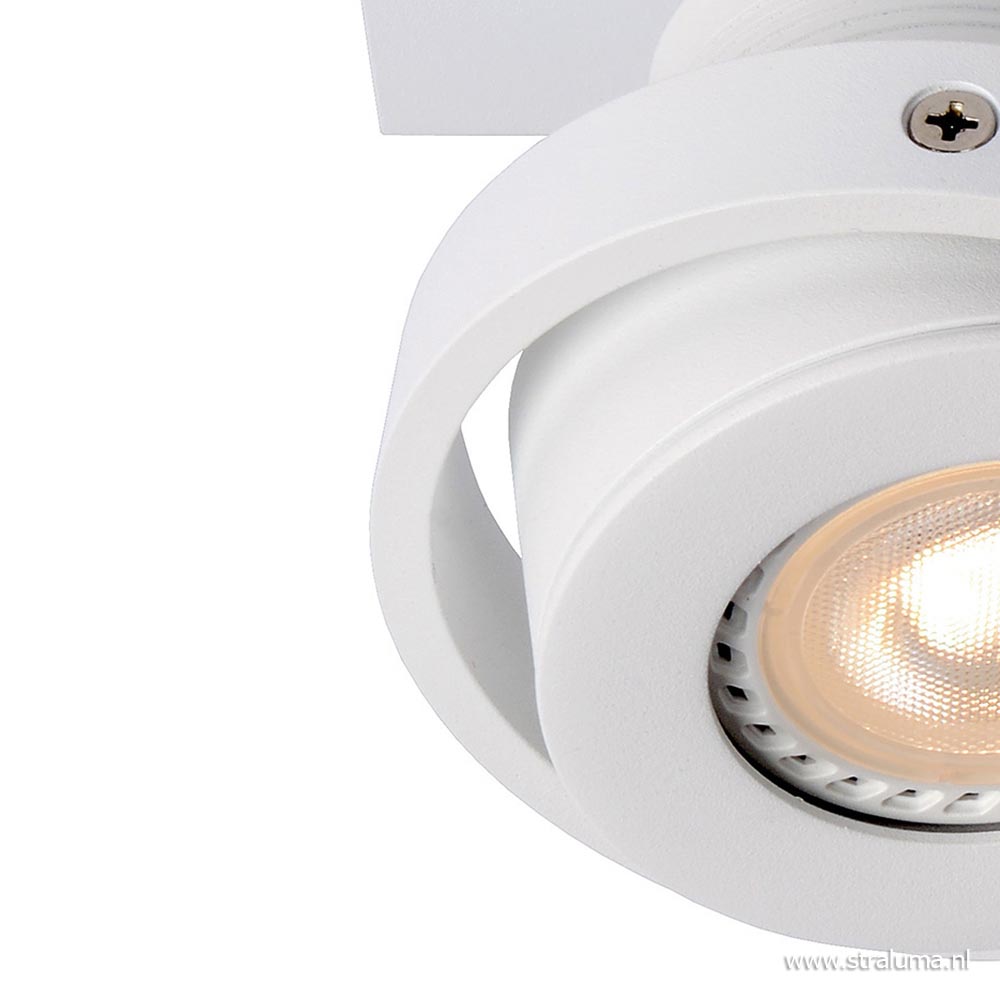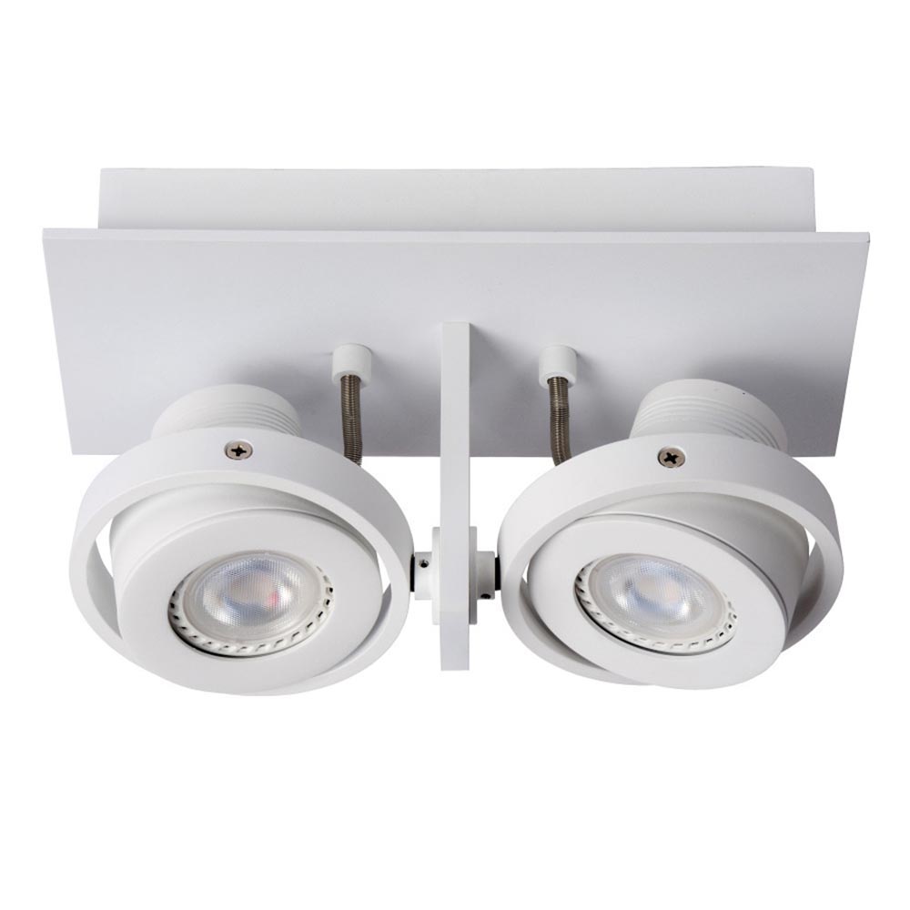 Een moderne plafondspot met een industrieel randje. De aluminium spot is voorzien van een matte witte finish en wordt geleverd inclusief LED. Voordeel van het LED is dat het energiezuinig is, maar daarnaast ook een dim to warm functie heeft. Dit houdt in dat de 2-lichts LED spot kan worden gedimt dmv een externe dimmer (exclusief) naar een zachtere warmere verlichting met een Kelvin tussen de 3000 en 2200. Ideaal voor in een woon- of slaapkamer. Beide spots zijn 360° te draaien en zijn kantelbaar zodat u deze naar wens kunt stellen. De ronde spots zijn bevestigd op een aluminium plaatje die weer vast zit aan de rechthoekige bevestiging. De witte opbouwspot is prima geschikt voor diverse ruimtes en doeleinden, en is dan ook te bestempelen als multifunctioneel.