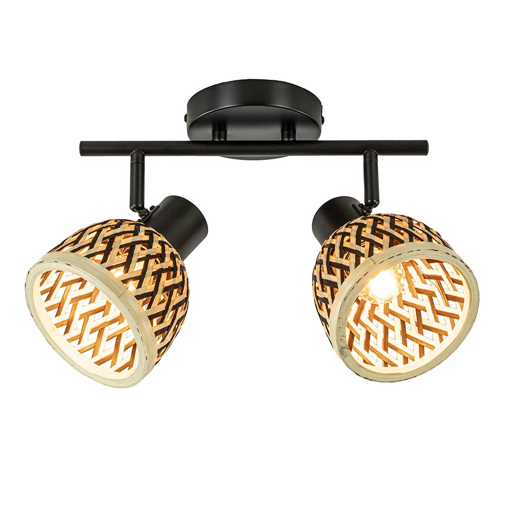 / Lampen / Plafondlampen / 2-Lichts plafond/wandlamp zwart met bamboe kappen