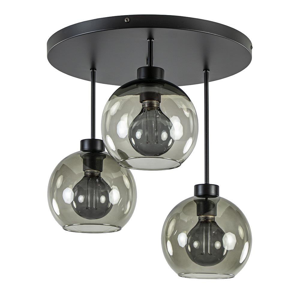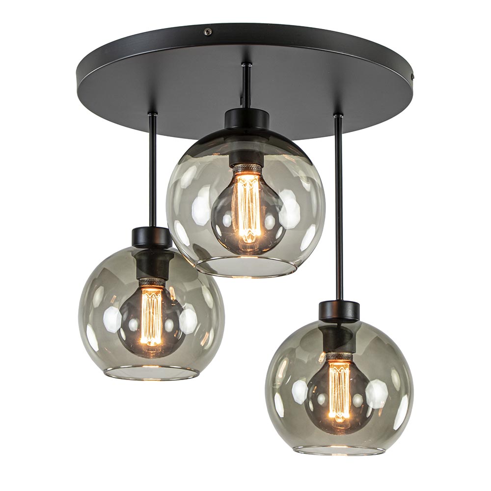 3-Lichts ronde plafondlamp met smoke glazen bollen