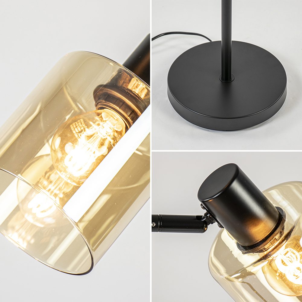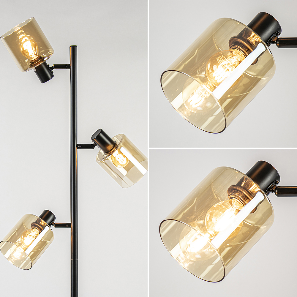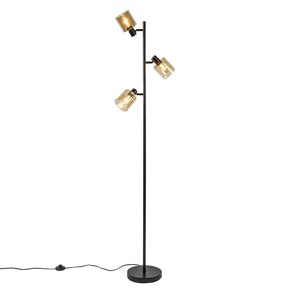Homepagina / Lampen / Vloerlampen / 3-Lichts vloerlamp zwart met amber glas