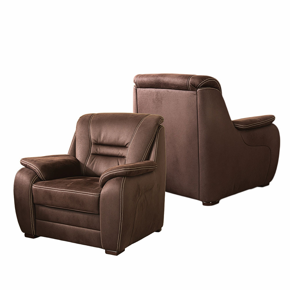 • Complete zithoek: 3-zits bank + 2 fauteuils • Ook los verkrijgbaar in de showroom • Luxe stoffering in Espresso bruin (stofgroep 12) • Klassiek design met optimaal zitcomfort • Leverbaar in talloze stoffen en kleuren