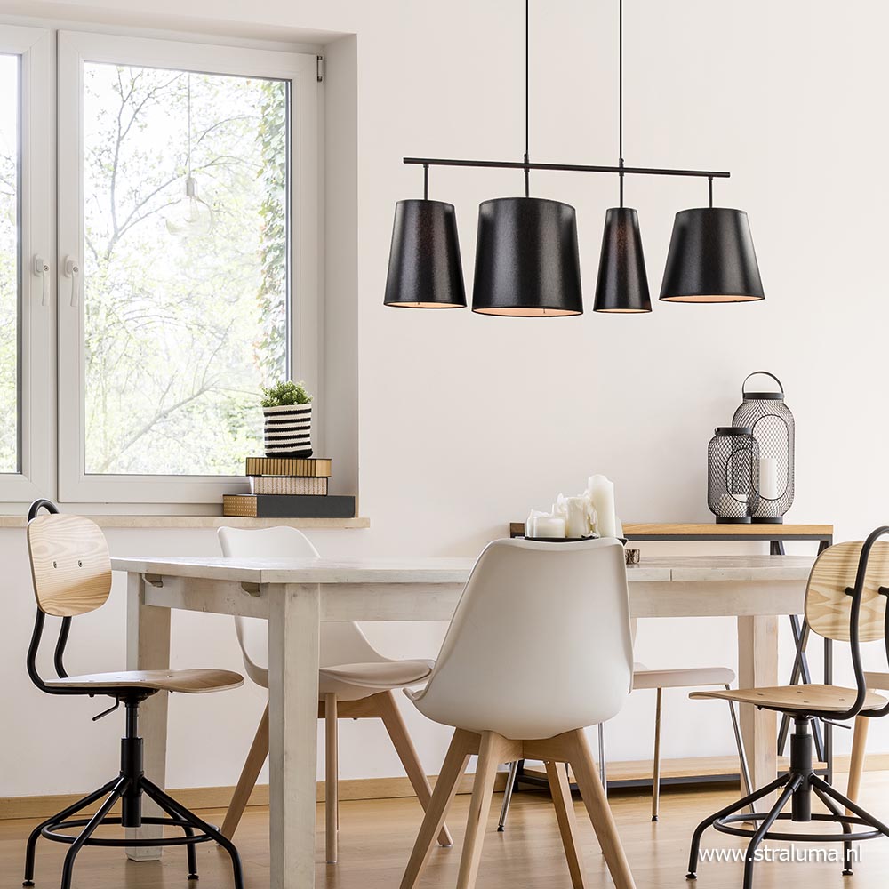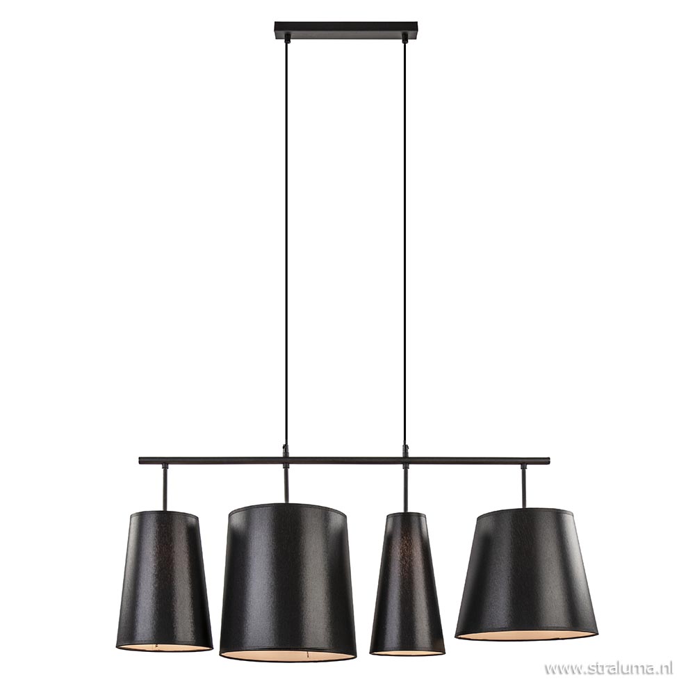 / Lampen / Eettafellampen / 4-L Hanglamp met zwarte kappen