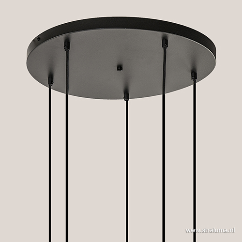 / Lampen / Hanglampen / 5-lichts plaat rond + pendels zwart ex.lb