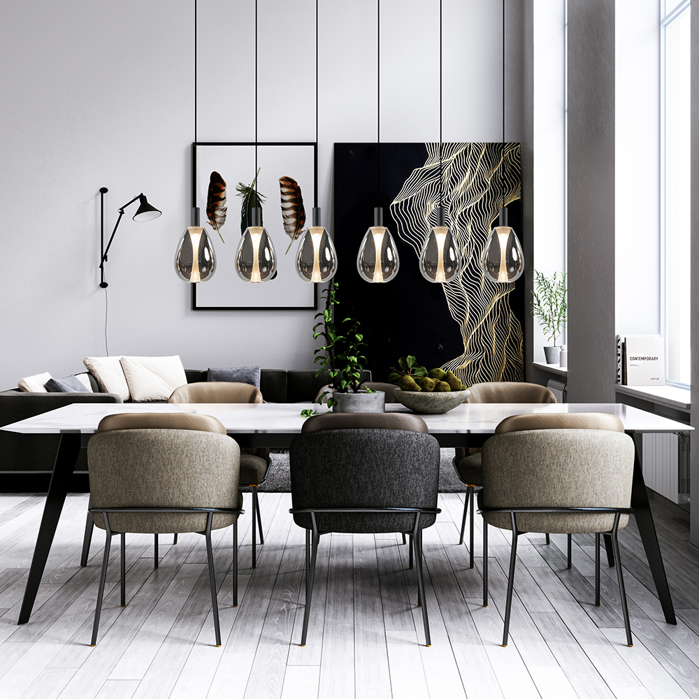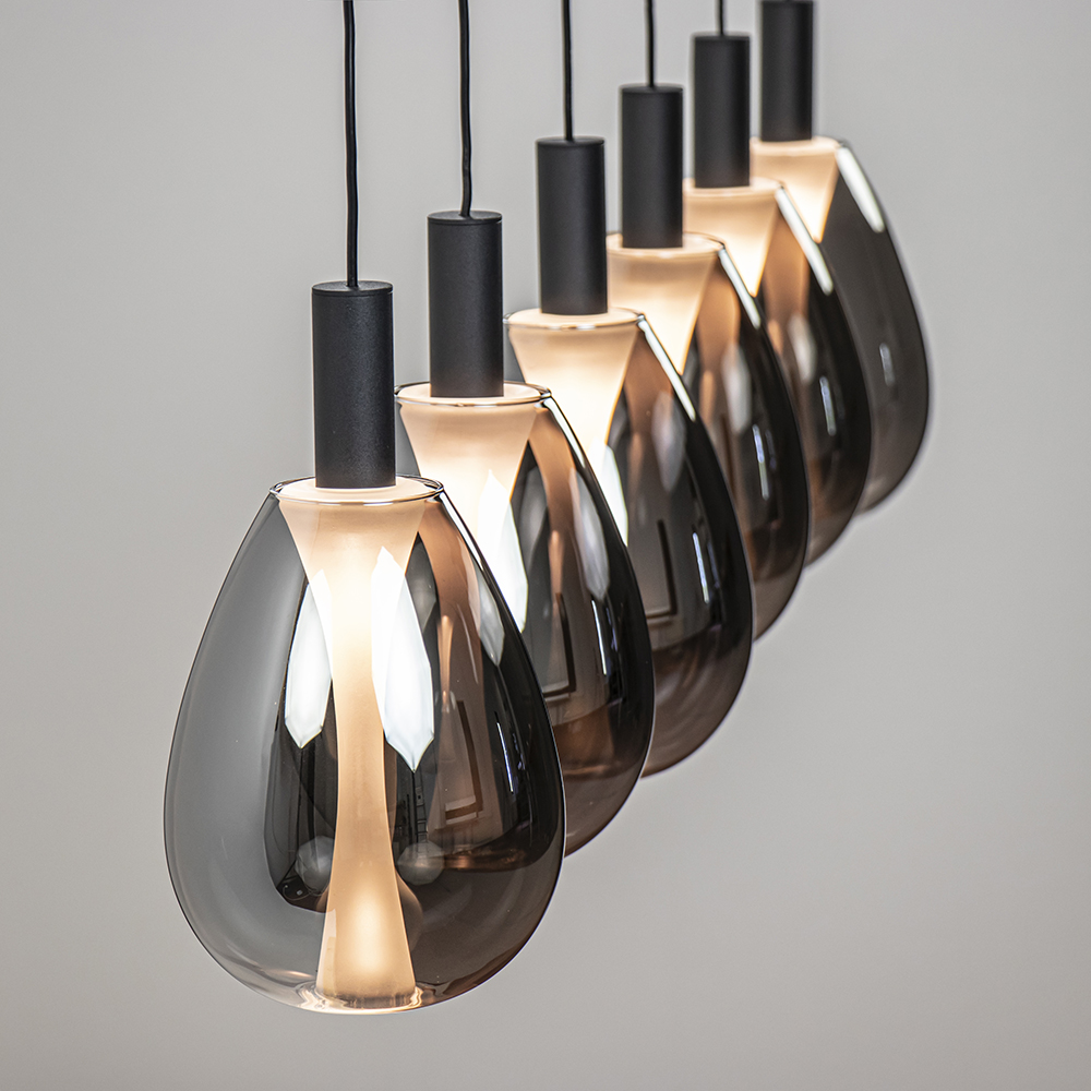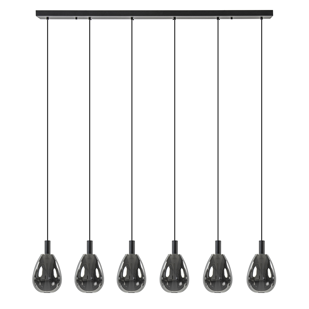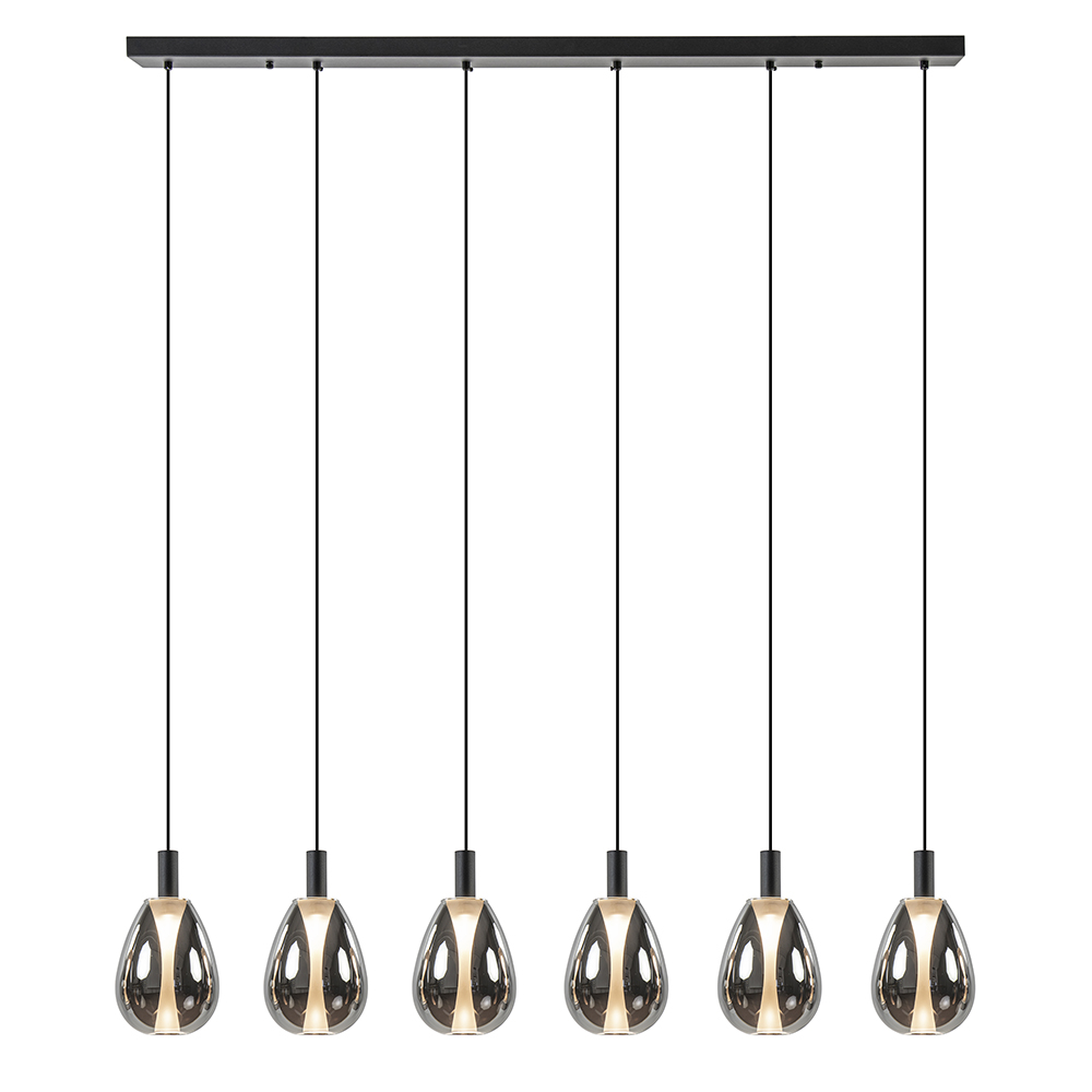 / Lampen / Eettafellampen / 6-Licht LED eetkamerhanglamp smoke glas met zwart