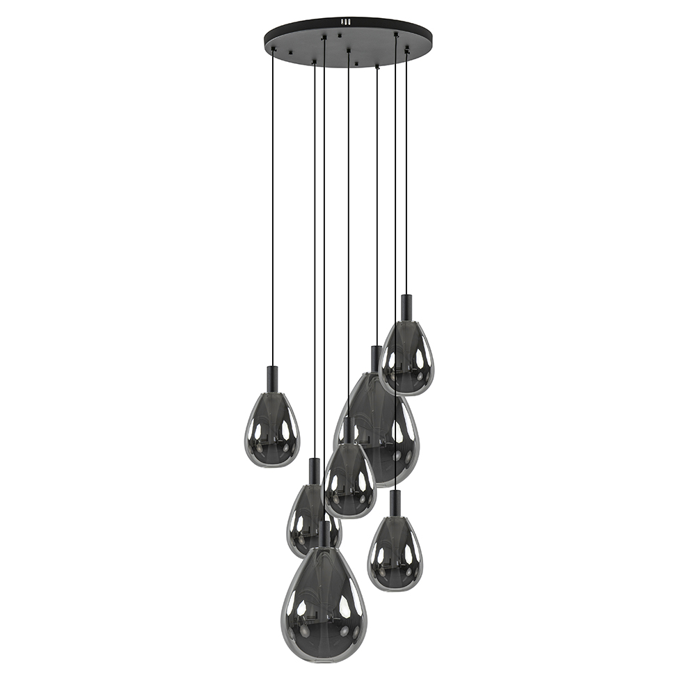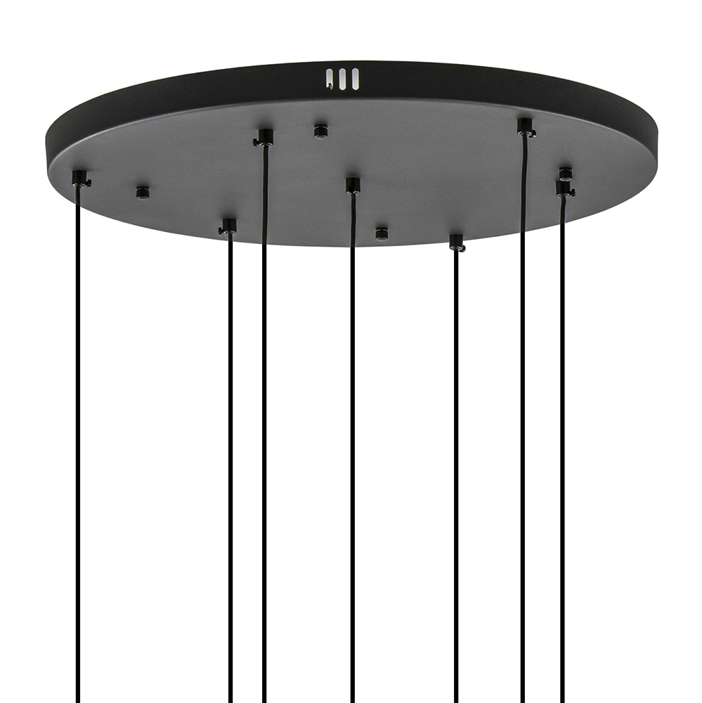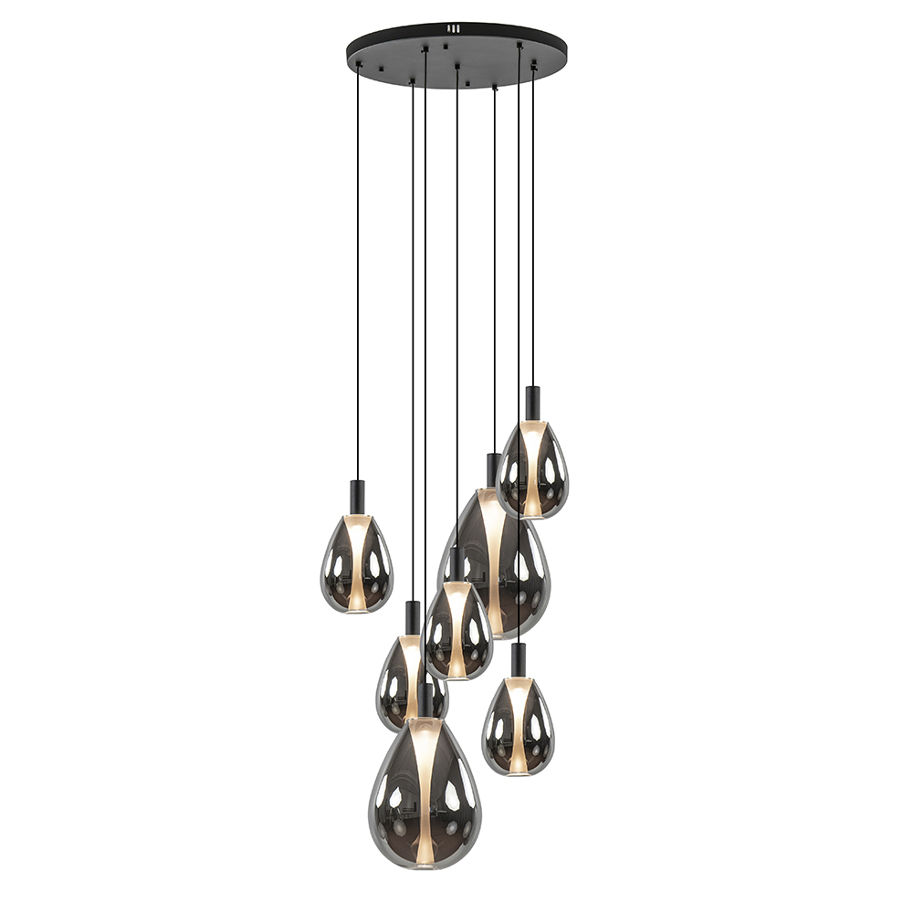 / Lampen / Eettafellampen / 7-Lichts ronde LED hanglamp zwart met smoke glas