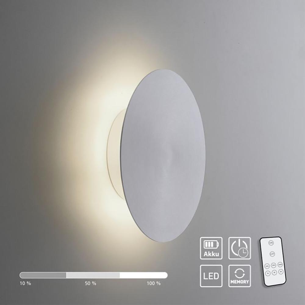 Deze moderne wandlamp is een verrijking voor het interieur. De LED wandlamp is zowel functioneel als effectief en is gemakkelijk is diverse ruimtes te gebruiken. De wandlamp werkt namelijk op een accu en is daardoor overal op te hangen. De ronde wandlamp is gemakkelijk te verwijderen van de wandbeugel zodat deze weer kan worden opgeladen met de meegeleverde USB kabel. De plaat op de wandlamp is uitgevoerd in het aluminium waarbij de verlichting aan de achterzijde is gemonteerd. Dit zorgt voor een sfeervol effect op de ondergrond. De LED lamp is in 3-standen te dimmen en is voorzien van een timerfunctie. De accu wandlamp heeft een accuduur van 7-40 uur en is gemakkelijk te bedienen met de meegeleverde afstandsbediening.
