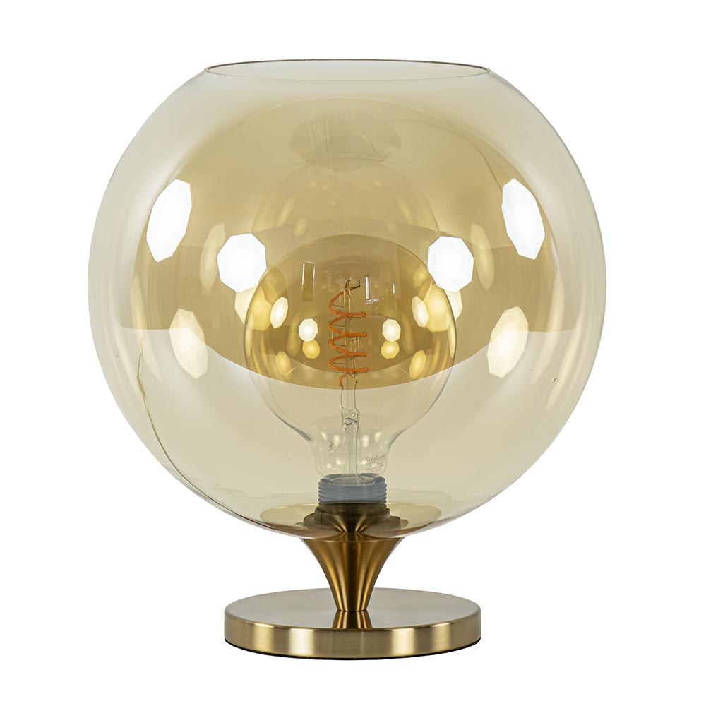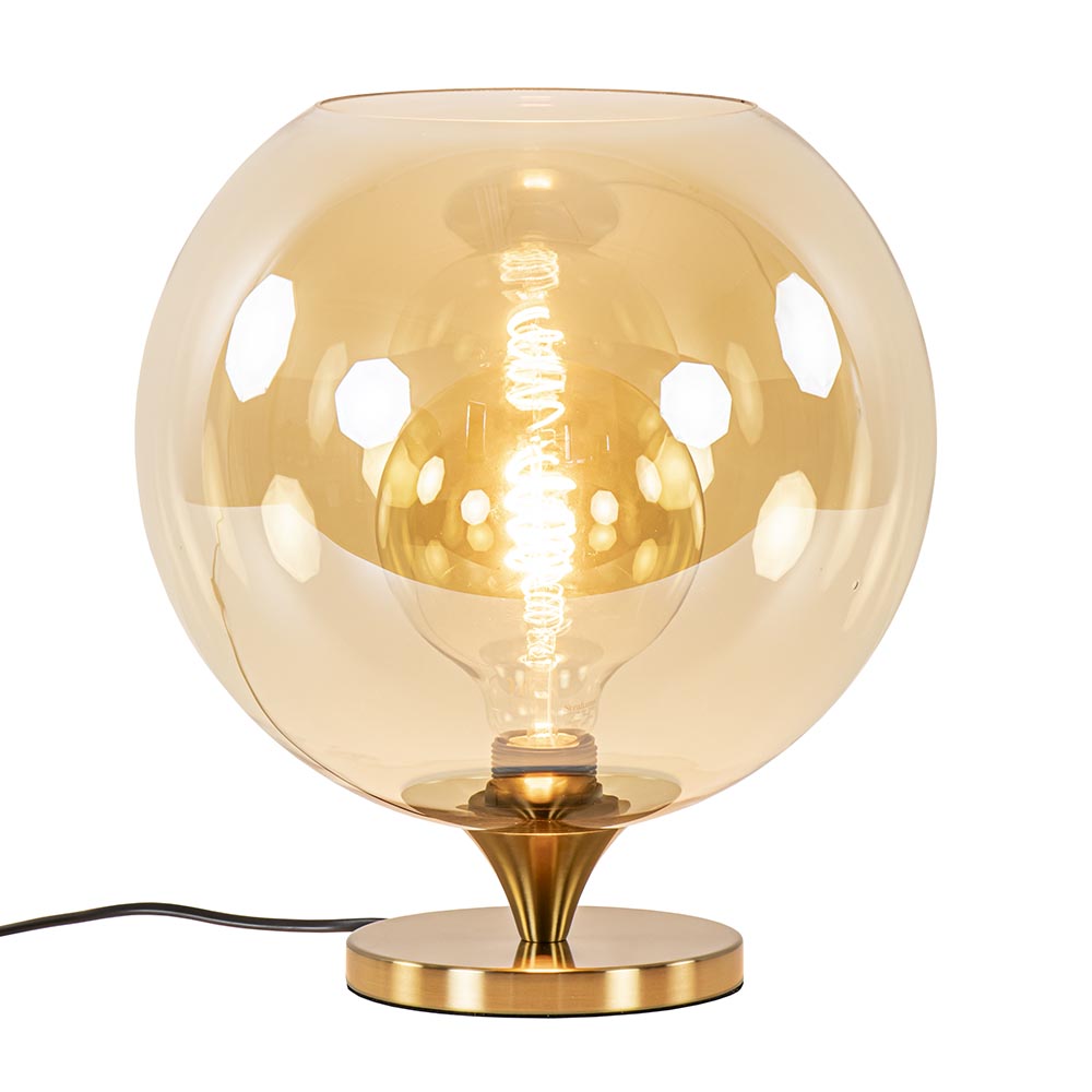 Deze tafellamp straalt warmte, chique elegantie en luxe uit. Het donker gouden voetje geeft de lamp een verfijnde uitstraling, terwijl het prachtige amberkleurige glas zorgt voor een warm en sfeervol licht. Met zijn stijlvolle ontwerp voegt deze lamp een vleugje chic toe aan elke ruimte. Plaats het op je dressoir, nachtkastje of bijzettafel en laat deze tafellamp je interieur verfraaien. Geniet van de luxe uitstraling en het gezellige licht dat deze lamp verspreidt. Het donker gouden voetje in combinatie met het amber glas creëert een uniek en elegant effect. Voeg een vleugje warmte en klasse toe aan je interieur met deze prachtige tafellamp. Deze tafellamp wordt met een snoer geleverd van 180 cm waarbij de schakelaar zich op 40 van het armatuur bevindt. Deze tafellamp komt in verschillende formaten en in twee kleuren.