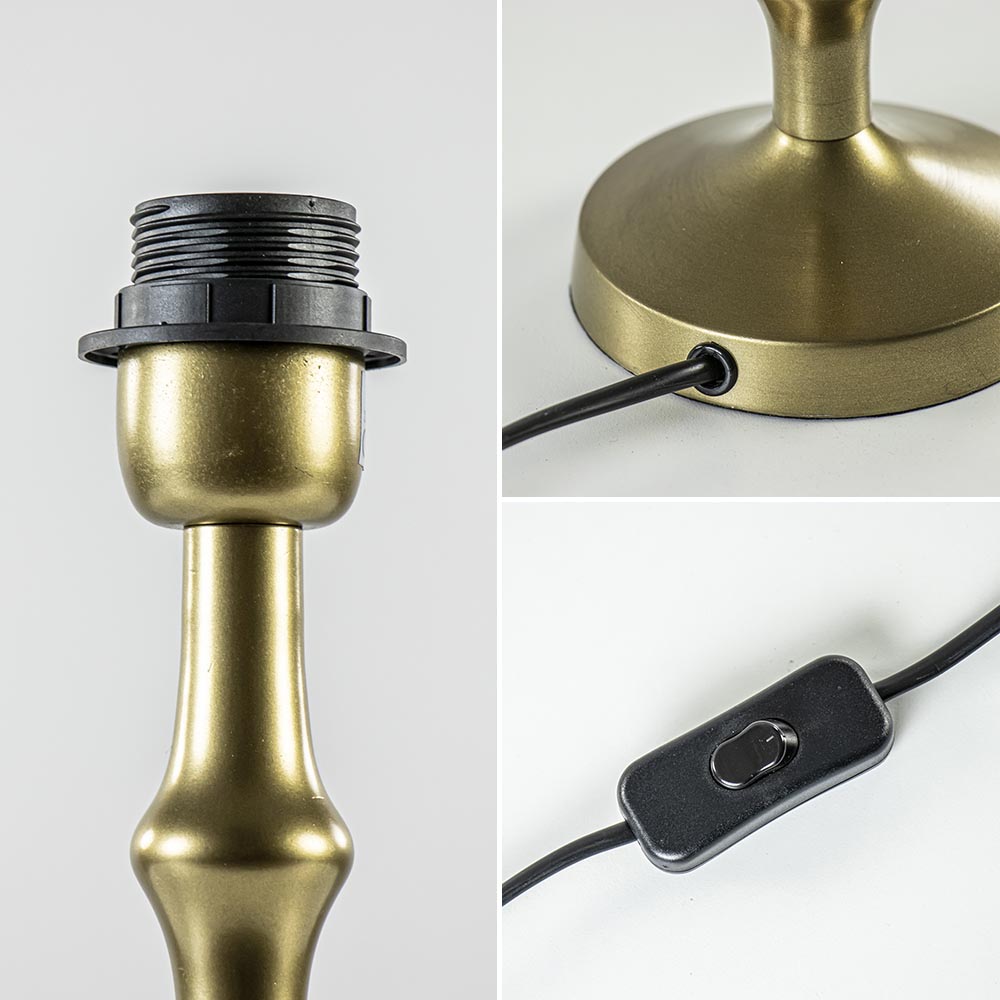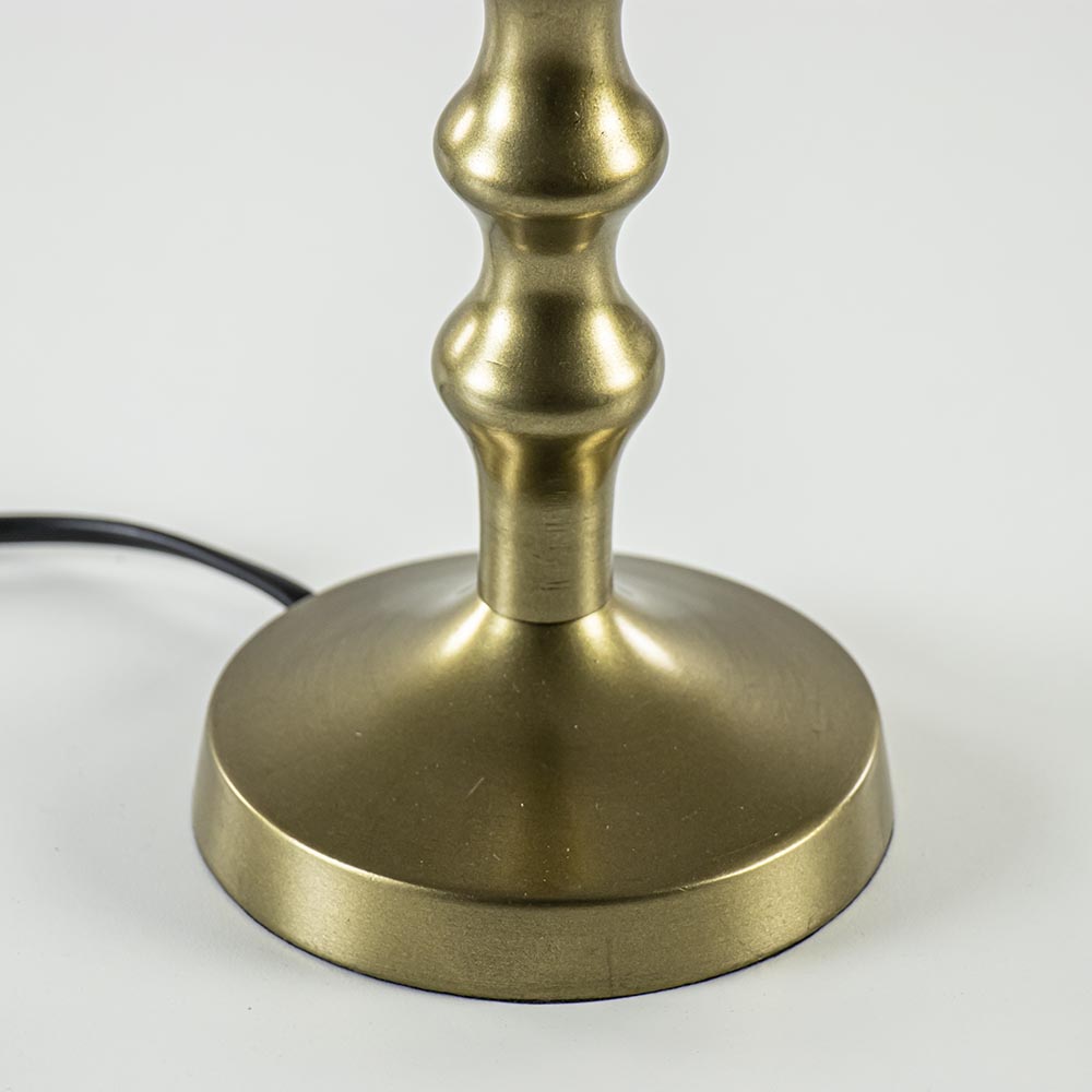 Deze antiek ogende lampvoet combineert mooi met een klassiek interieur. De tafellamp is gemaakt van metaal en uitgevoerd in een antiek bronzen kleur. De lampvoet is te combineren met verschillende kleuren kap. De tafellamp heeft een snoer van 150 CM met de schakelaar op 55 CM van het armatuur. De lamp wordt exclusief kap geleverd.
