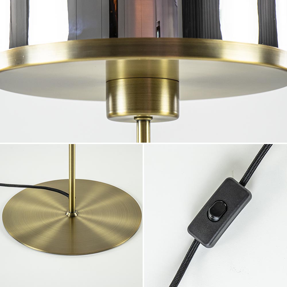 Antiek bronzen tafellamp Maverick met smoke glas groot