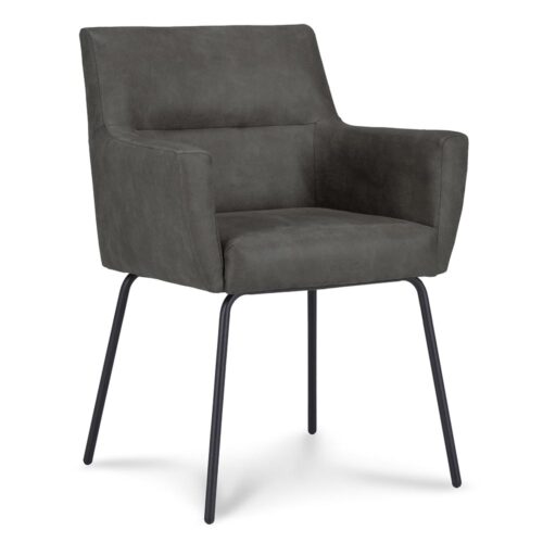 / Wonen / Eetkamerstoelen / Armstoel Microleder Bull antraciet met zwarte poot