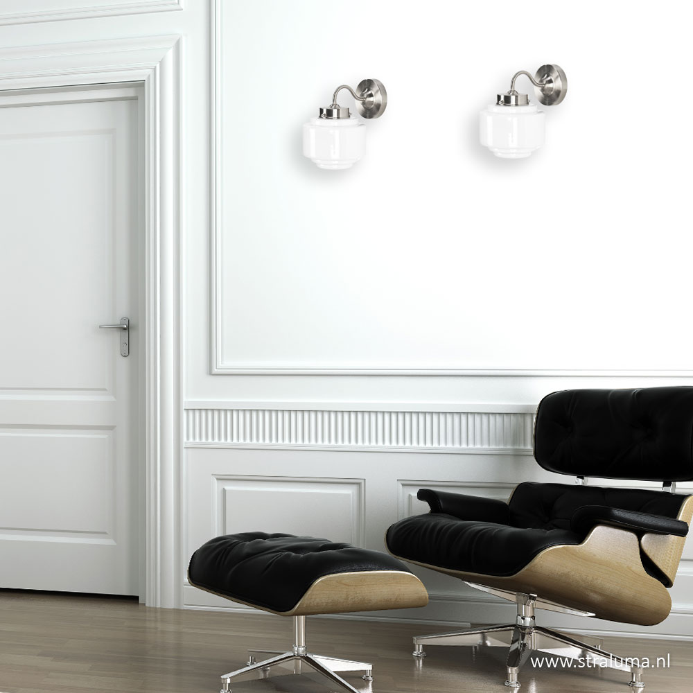 Homepagina / Lampen / Wandlampen / Art Deco wandlamp staal met wit glas