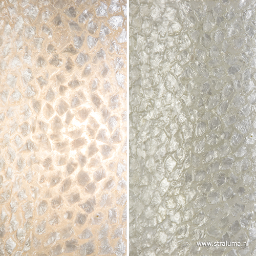 Een beetje strand en zee in huis halen? Dat kan met deze sfeervolle wandlamp. De wandlamp is gemaakt van gebroken stukjes capiz schelpen en geeft een leuk effect. Vooral wanneer de muurlamp wordt aangezet, zorgen de schelpen voor een mooie, warme en gezellige sfeer. De schelpen wandlamp is op te hangen aan een metalen frame en heeft een wit snoer met schakelaar. Omdat de lamp niet ver uitsteekt van de muur, is deze perfect geschikt voor bijvoorbeeld een hal of leuk naast het bed.