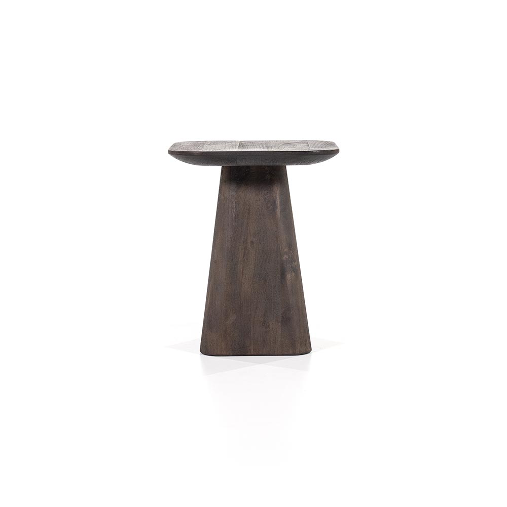 Stoere bijzettafel van mangohout en is afgewerkt met een warme coating. Het mangohout heeft verschillende kleurschakeringen en heeft oneffenheden in het blad. Dit geeft de bijzettafel een stoer uiterlijk. De bijzettafel heeft een mooie warme bruine kleur. De bijzettafel komt ook in het zwart en in verschillende formaten.