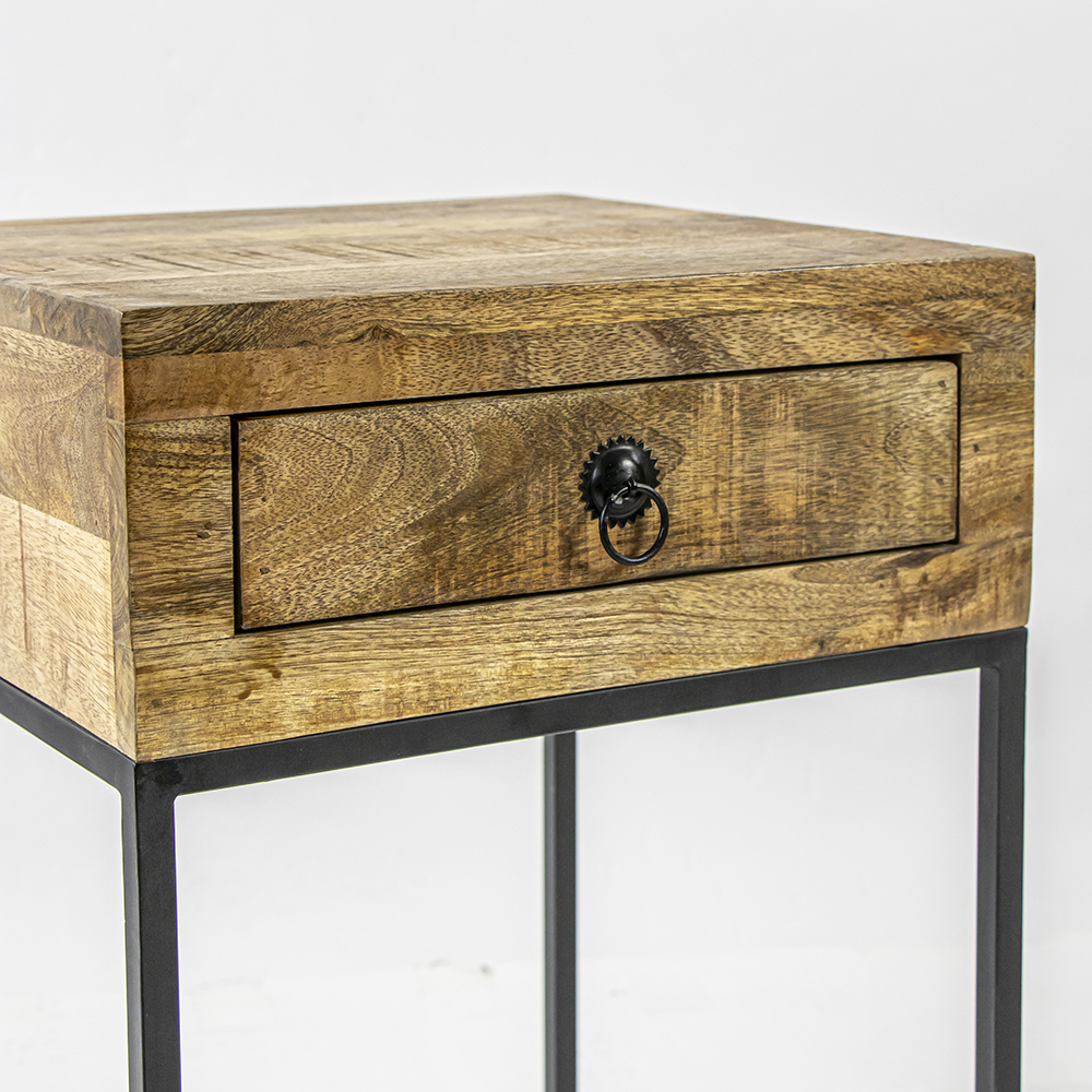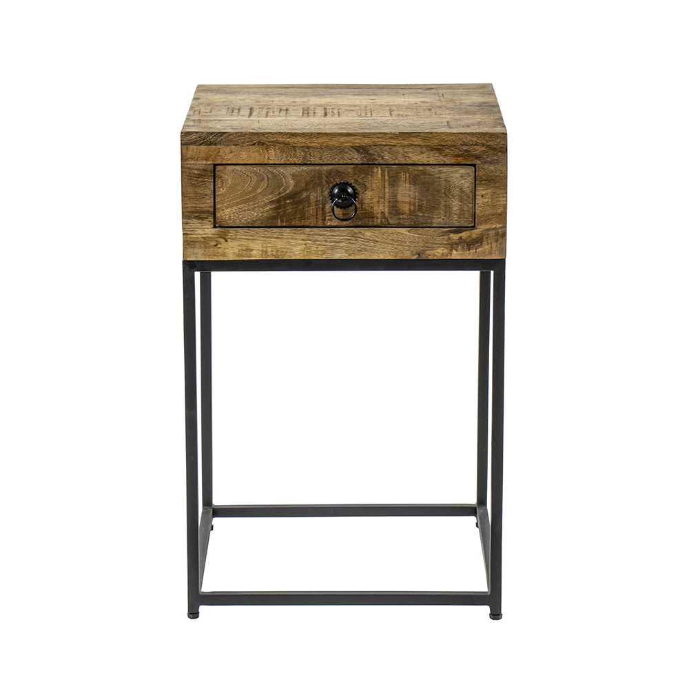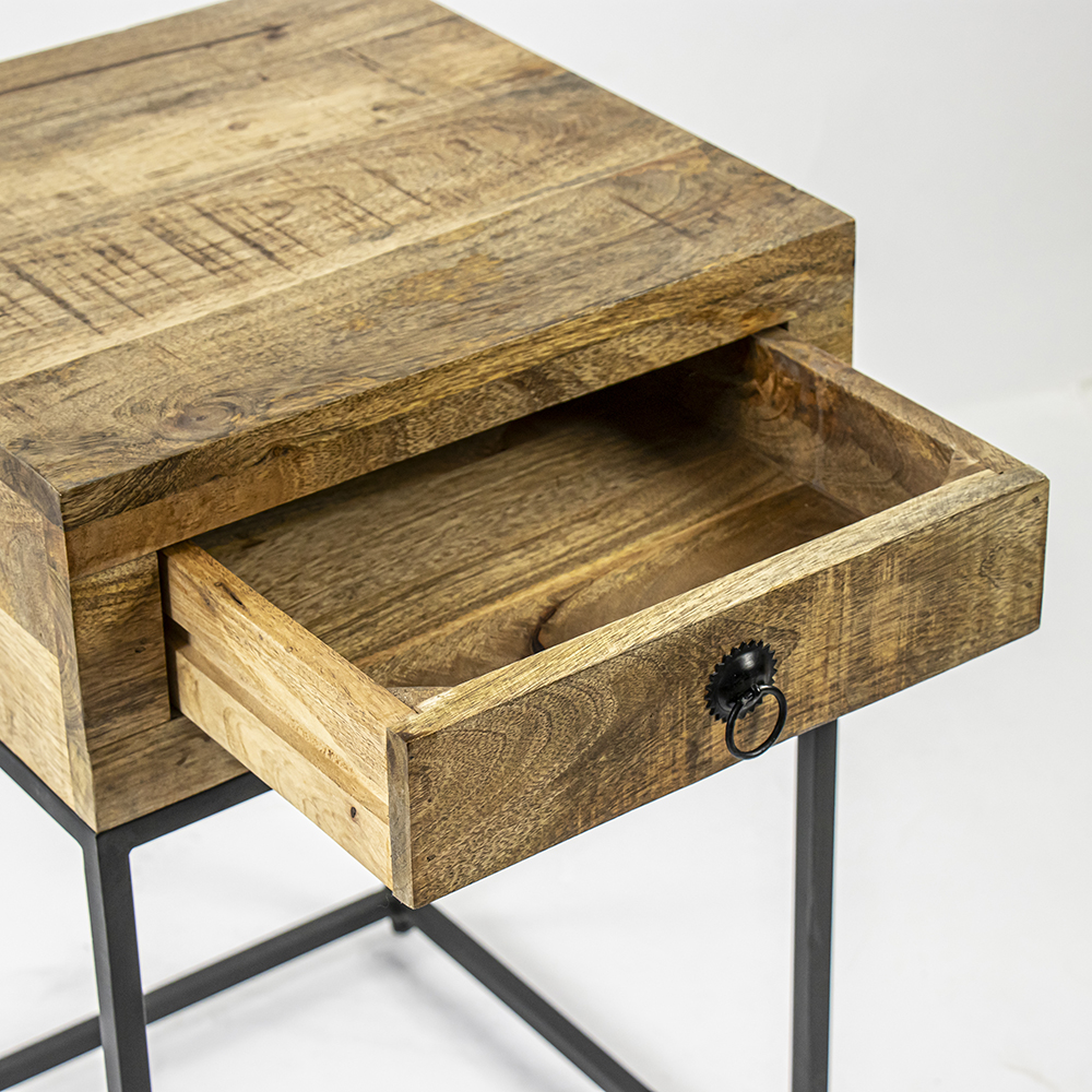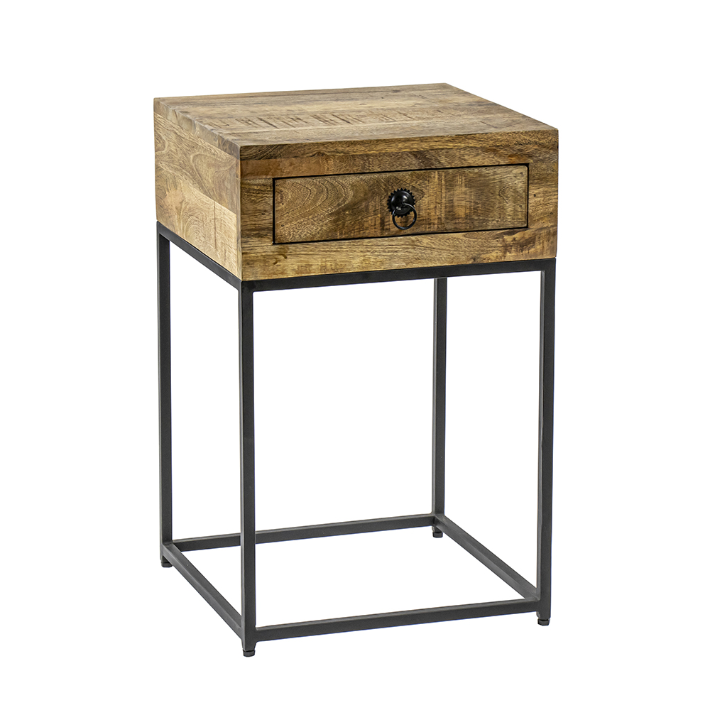 / Wonen / Bijzettafels / Bijzettafel met lade mangohout/metaal