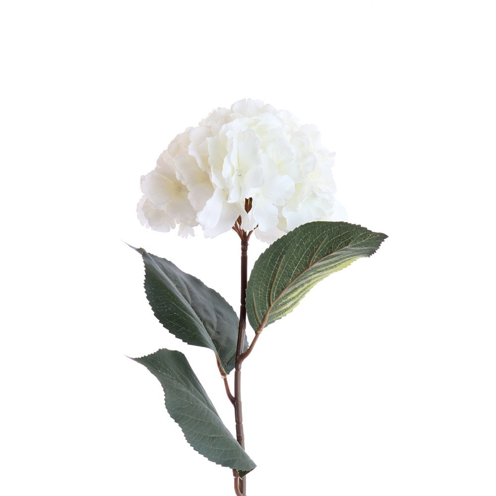 Bloem Hortensia is een stijlvolle kunsttak met een volle, witte bloem en natuurgetrouwe bladeren. Dankzij de verfijnde afwerking zorgt deze hortensia direct voor een frisse en elegante uitstraling in elke vaas.