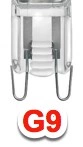 De lichtbronnen met G9 fitting, waarvan de pinnetjes 9 mm uit elkaar staan, hebben een uitstekende kleurweergave en zijn tevens voorzien van een UV-blok. Dit voorkomt verkleuring van de uitgelichte objecten. De G9 lichtbron geeft warm wit licht en is dimbaar. Wil je een lichtbron die minstens 10x langer mee gaat? Stap dan over op de LED versie van de G9 lichtbron.