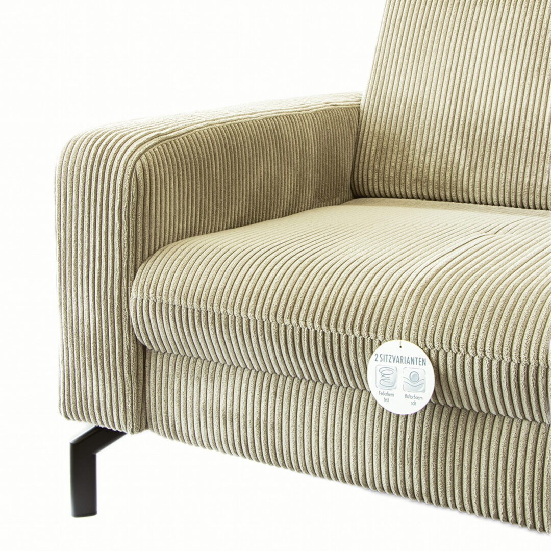 Homepagina / Wonen / Banken / Blossom hoekbank in stof Coral Lind beige/salie 2-zits met chaise longue en verstelbare rug- en hoofdsteunen.