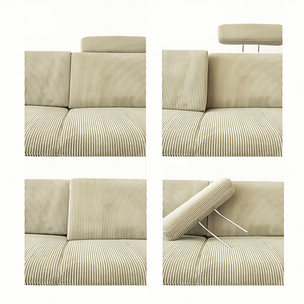 Waarom kiezen voor de Blossom hoekbank? • Eigentijds design met zachte corduroy bekleding • Luxe comfort dankzij verstelbare rug- en hoofdsteunen • Perfecte balans tussen stijl en functionaliteit • Duurzaam en tijdloos ontwerp • Ruimtelijk effect door elegante zwarte pootjes