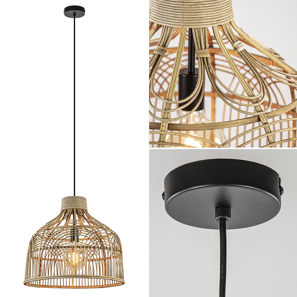 – hoogte: 138 cm – kap: Ø48×43 cm – bevestiging: Ø10×2,5 cm – rotan, naturel – metaal, zwart – exclusief lichtbron (E27) – dimbaar (exclusief)