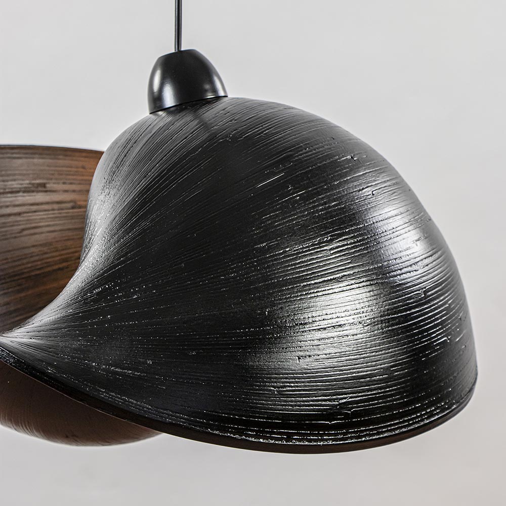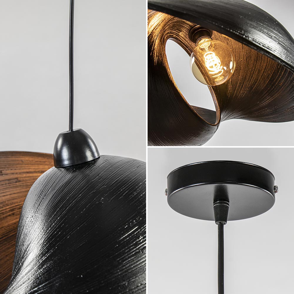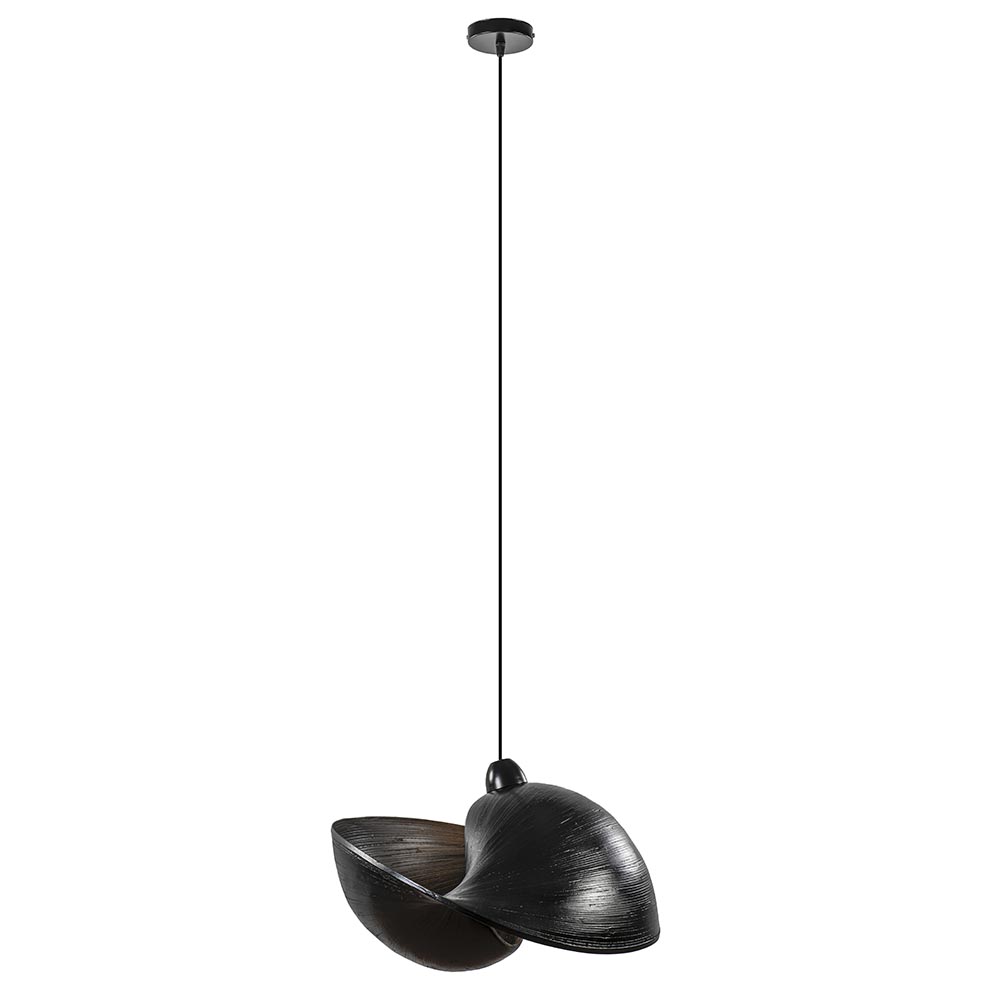 Het unieke schelpdesign is echt een eyecatcher van deze hanglamp. De hanglamp heeft aan twee kanten een opening en dit zorgt voor een mooie lichtverspreiding. Door de grootte van de hanglamp is deze geschikt voor boven een eettafel of in de slaapkamer. De zwarte kap is gemaakt van bamboe en hangt aan een zwart snoer die gemakkelijk in te korten is indien gewenst. De lamp wordt exclusief lichtbron geleverd.