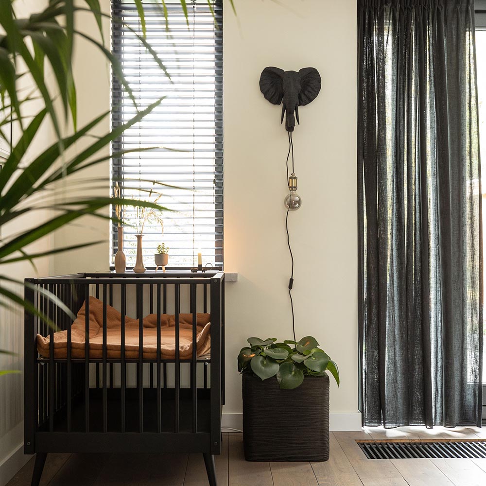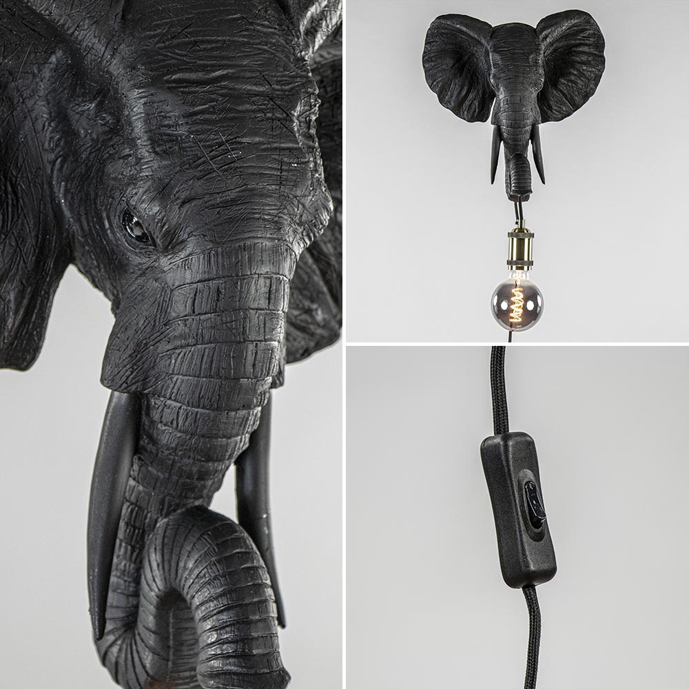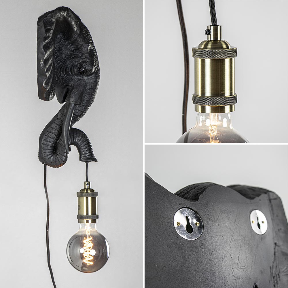 Helemaal trendy zijn de lampen in de vorm van dieren. Zo ook deze olifanten kop. De wandlamp van Light and Living is mooi te combineren in diverse woonstijlen en wordt gemakkelijk opgehangen aan 2 oogjes. De mat zwarte wandlamp Elephant is voorzien van een zwart snoer met een bronzen E27 fitting. Erg leuk in de woonkamer of slaapkamer.