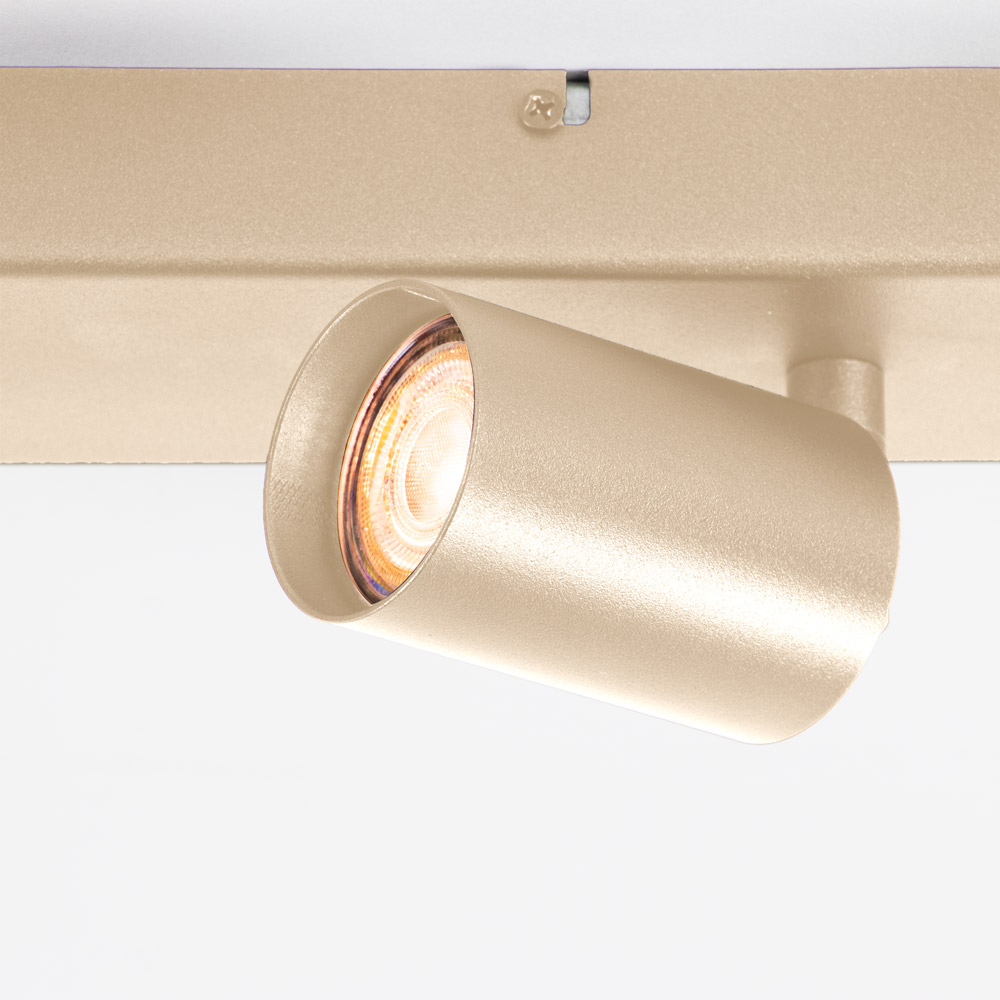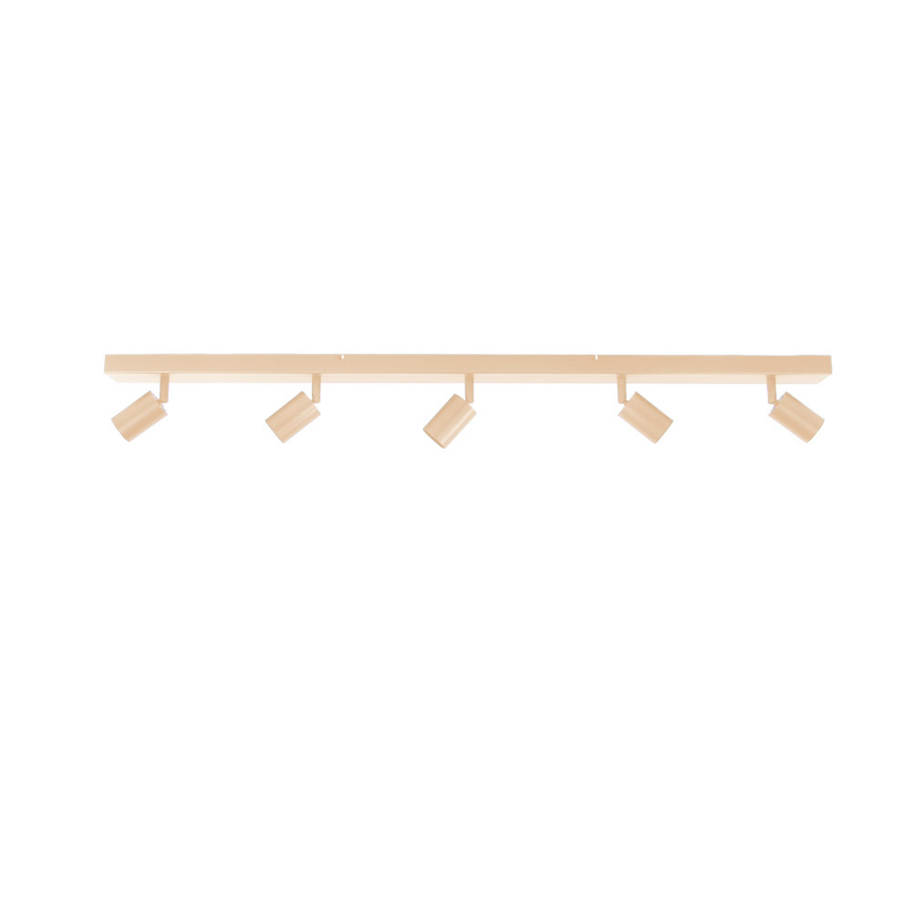 • 5 verstelbare spots voor optimaal lichtbereik • Geschikt voor GU10 lichtbronnen (zelf te kiezen) • Strakke, moderne balk van 130 cm • Glanzende beige afwerking • Eenvoudig vervangen van lichtbronnen via schroefdraad