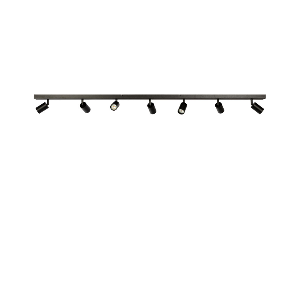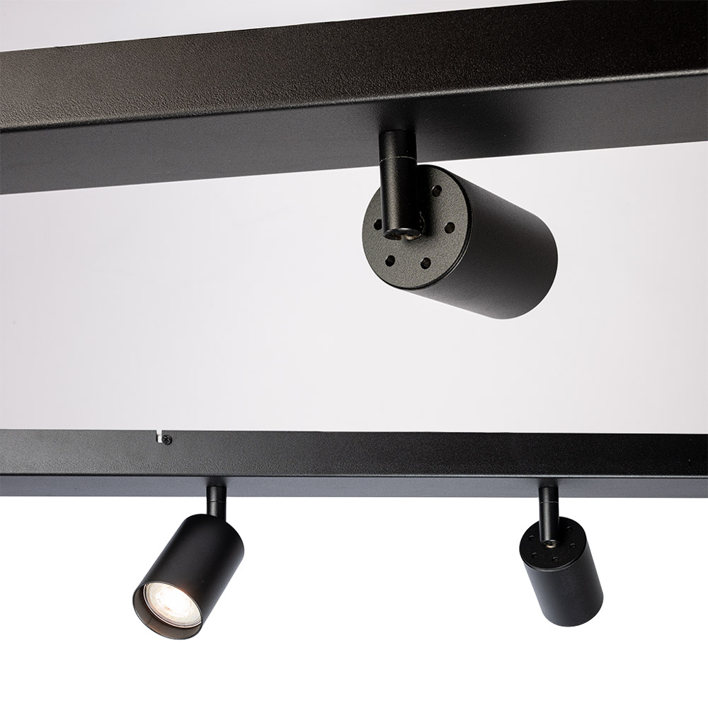 • Strakke plafondspot met 5 richtbare spots • Modern zwart design met subtiele structuur • Perfect boven een lange eettafel of kookeiland van ±180 cm • Geschikt voor GU10 lichtbronnen (7W, niet inbegrepen) • Dimbaar via externe schakelaar en geschikte lichtbron (niet inbegrepen)