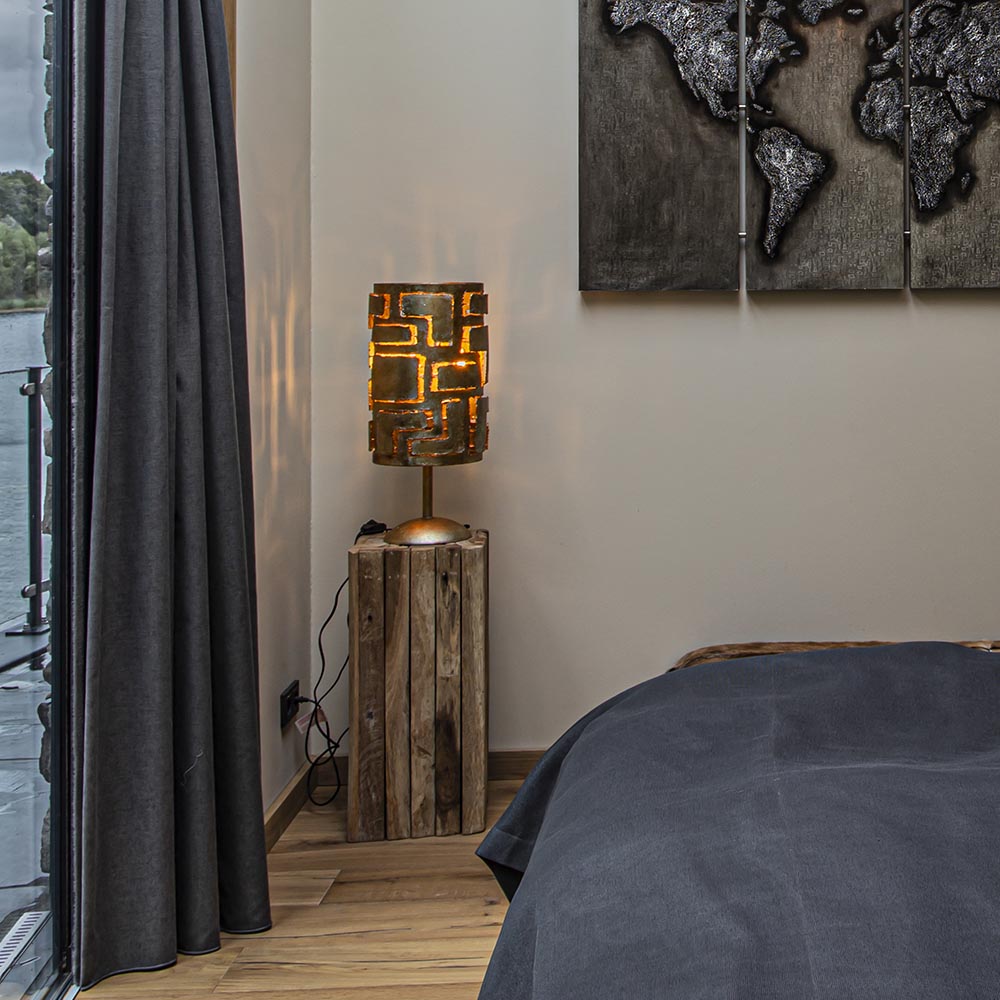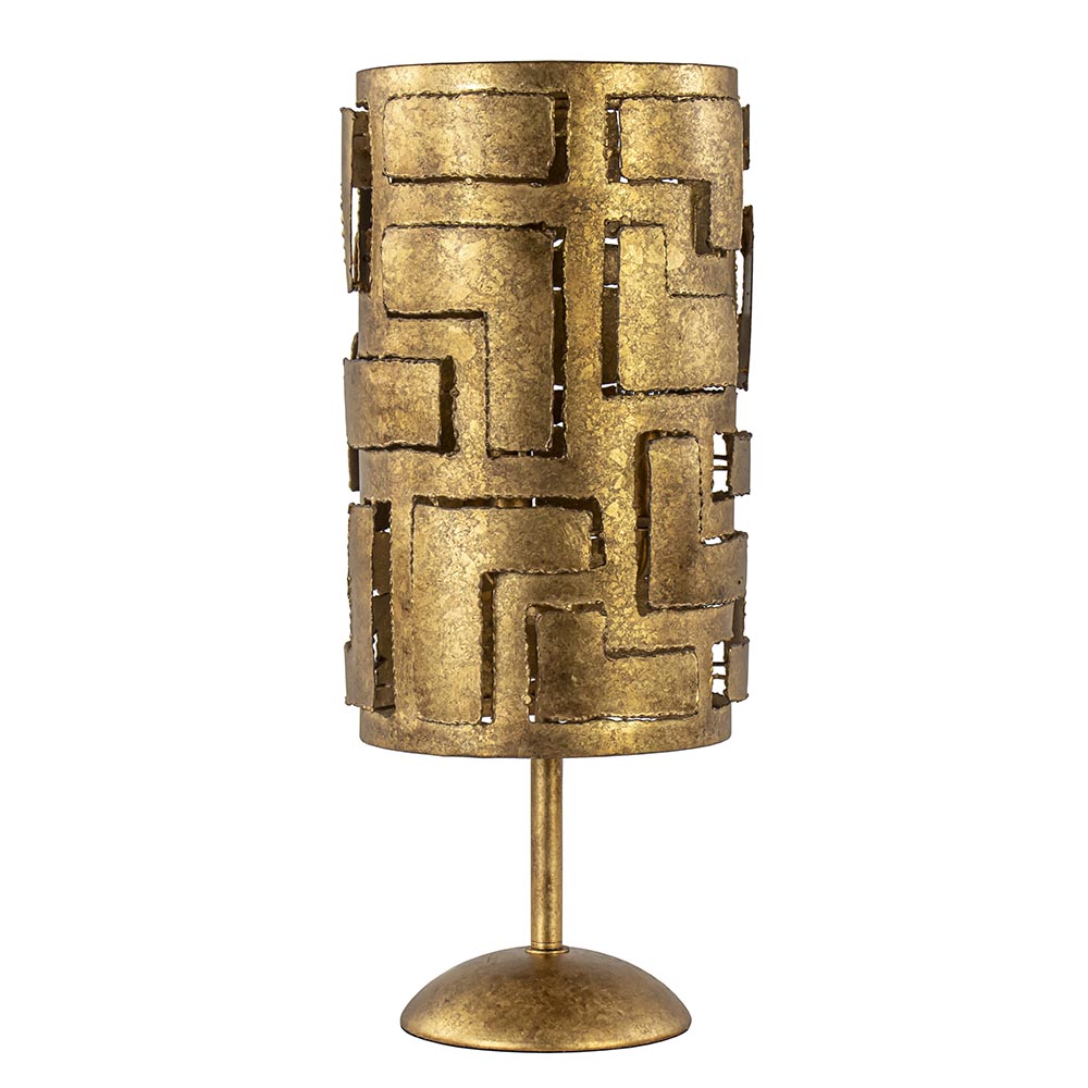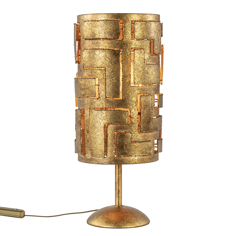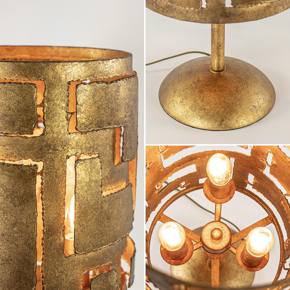 Deze mooie tafellamp combineert het klassieke met het moderne. Het robuuste design krijgt een rauw randje door de bronzen kleur en de grofheid van het metaal. De tafellamp past mooi op een bijzettafel, dressoir of nachtkastje. De bewerking van het metaal geeft het armatuur een mooie subtiele lichtdoorlating. De lamp wordt exclusief lichtbronnen geleverd. Deze heeft een E14 fitting, er gaan 3 lichtbronnen in deze tafellamp. De robuuste tafellamp is voorzien van een dimmer in het snoer. De bronzen lamp heeft een snoer van 150 cm en de dimmer bevindt zich op 30 cm van het armatuur.