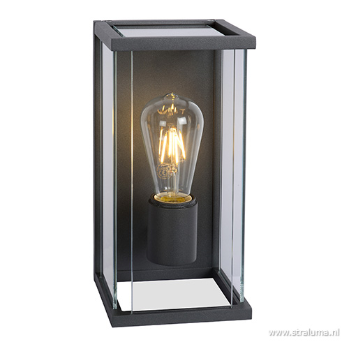 Deze moderne wandlamp is multifunctioneel, hij kan namelijk zowel binnen als buiten (conform IP54) worden opgehangen. De muurlamp leent zich prima voor in een hal of woonkamer, maar ook naast de buitendeur verwelkomt deze strakke lamp sfeervol uw gasten. Het heldere glas beschermt de lichtbron (exclusief) en laat tegelijkertijd een hoop licht door. Door de E27 fitting is de wandlamp perfect geschikt voor LED, oftewel energiezuinig, ideaal wanneer de lamp buiten lang brandt, al kan u ook kiezen om de ingebouwde bewegingssensor te gebruiken. Het antraciete frame wordt direct op de muur geplaatst waardoor er geen losse snoeren zichtbaar zijn. Strak, modern èn sfeervol in één.