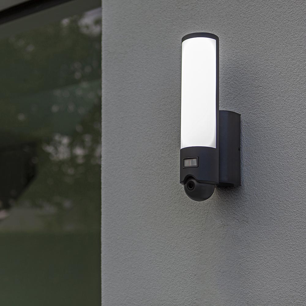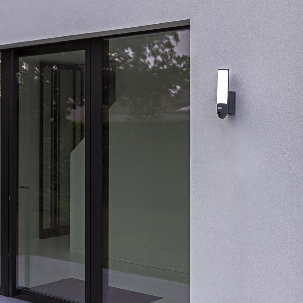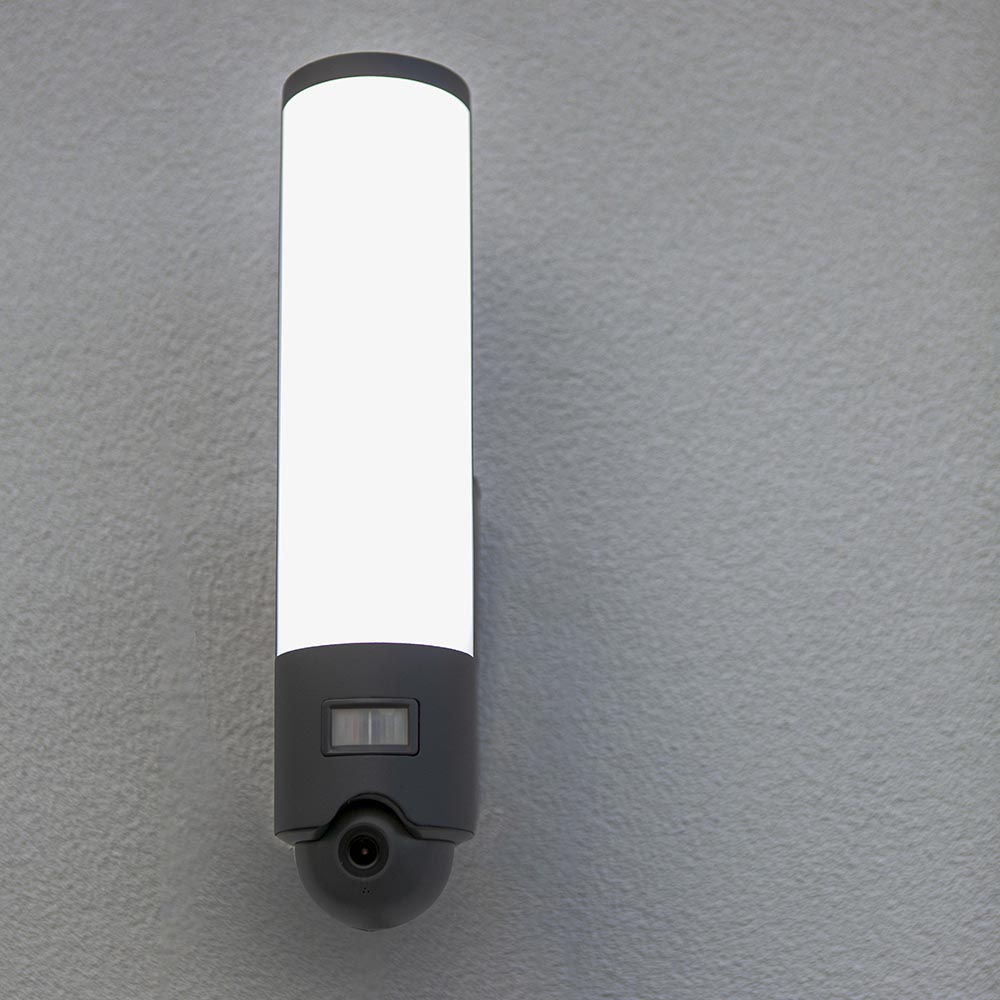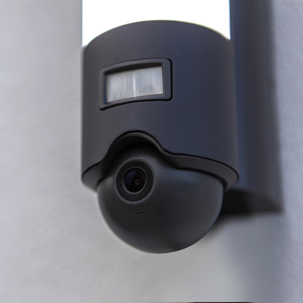 Met deze moderne buitenlamp maakt u het huis een stuk veiliger. De buitenlamp is voorzien van geïntegreerde LED verlichting, een camera en een bewegingssensor. De cilindervormige buitenlamp is gemaakt van hoogwaardig aluminium en uitgevoerd in het donker grijs. Zowel de verlichting als de camera zijn te bedienen via een app of voicecontrol. Dim bijvoorbeeld de verlichting of kies de juiste kleurtemperatuur en stel de camera naar wens in. De camera is verder voorzien van een microfoon en speaker.