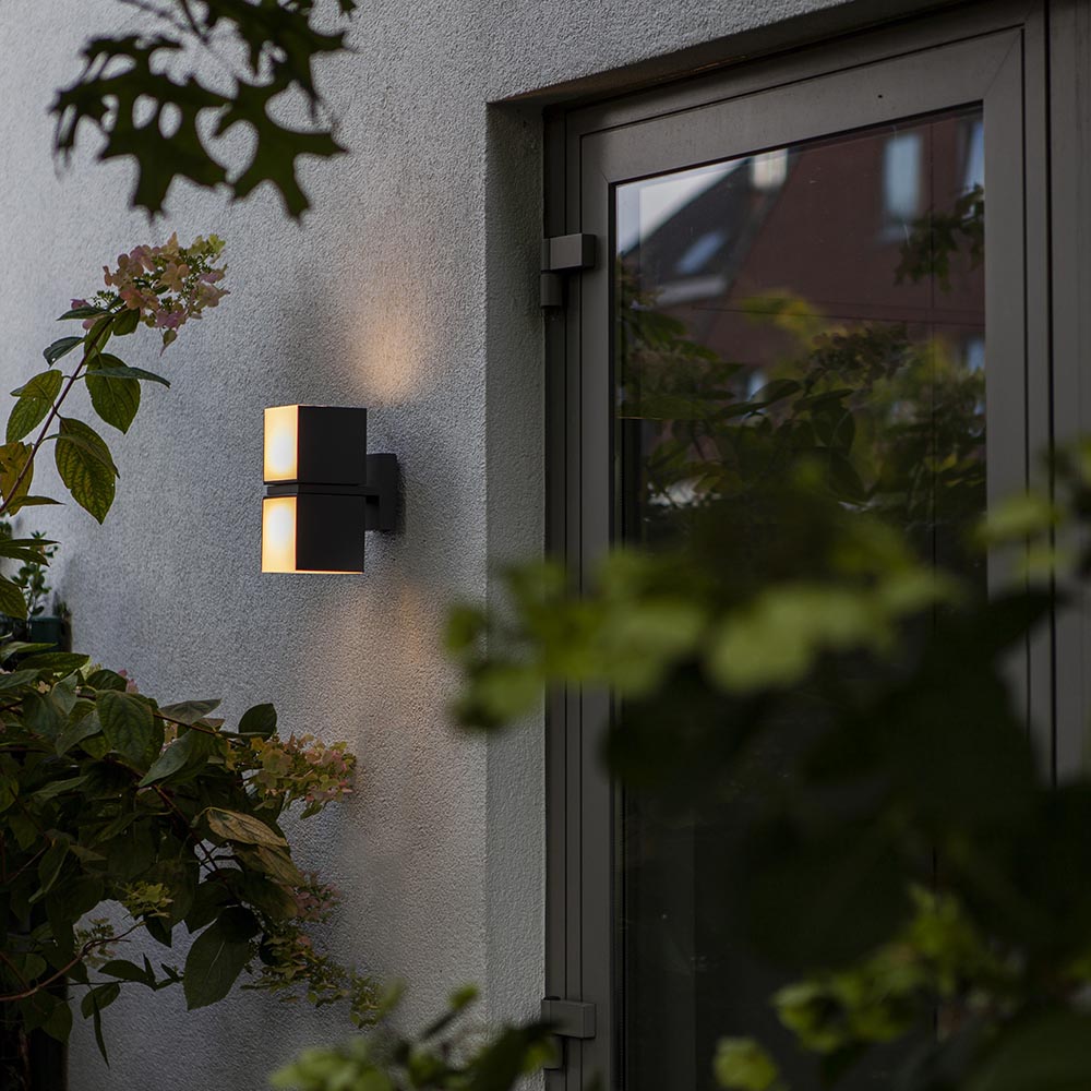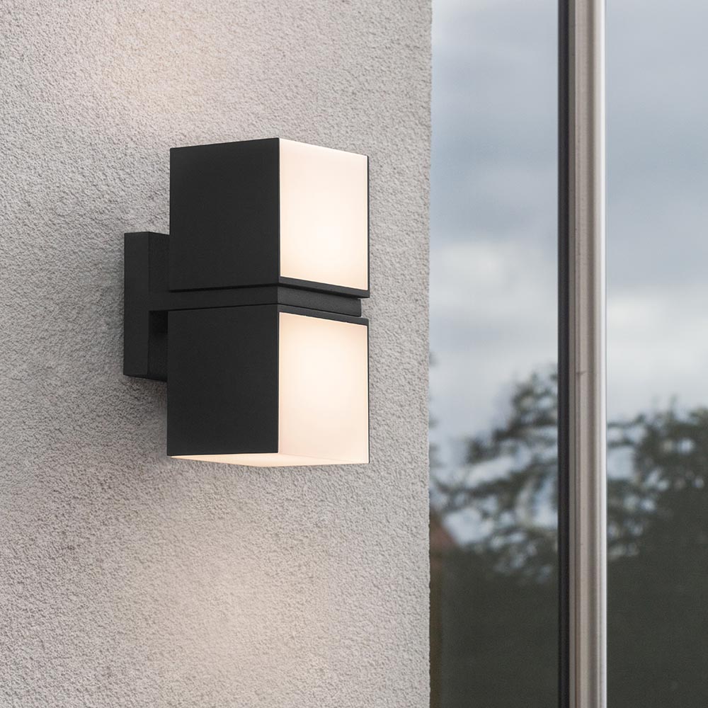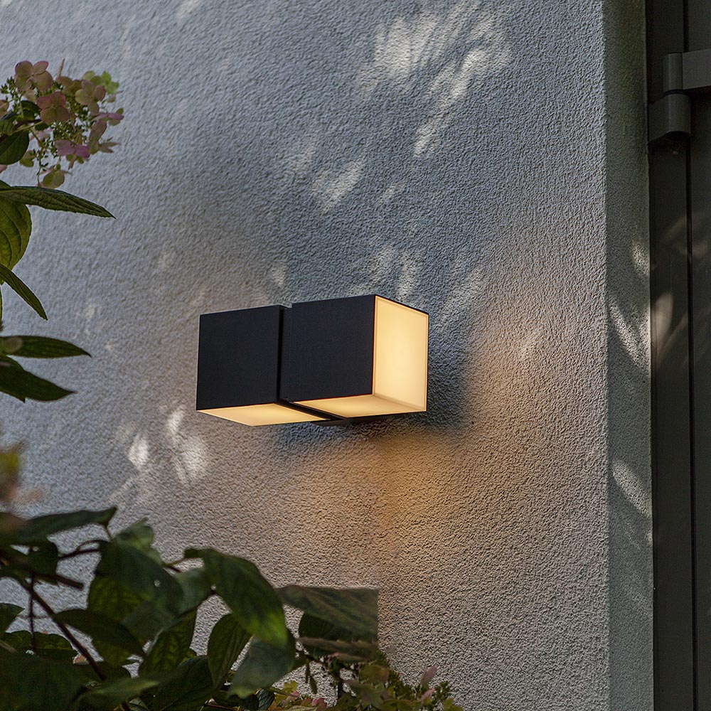 Modern en veelzijdig. Wandverlichting die zowel horizontaal als verticaal geplaatst kan worden. Tevens zijn ook de kubussen los van elkaar 350 graden te draaien. Hiermee kunt u gemakkelijk zelf de sfeer en de lichtverspreidingl bepalen. Deze zwarte LED buitenlamp is een echte eye-catcher door zijn moderne uitstraling. Doordat de behuizing helemaal dicht is, is de buitenlamp IP54 goedgekeurd.