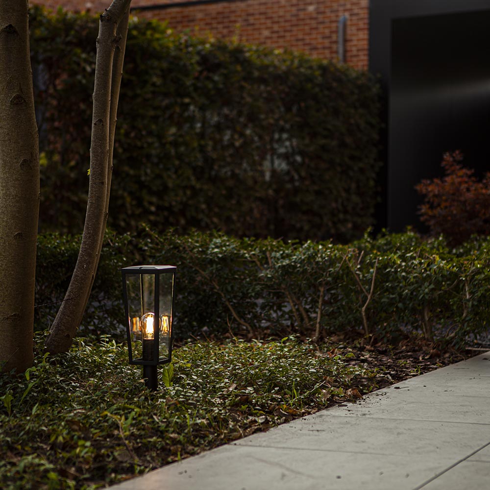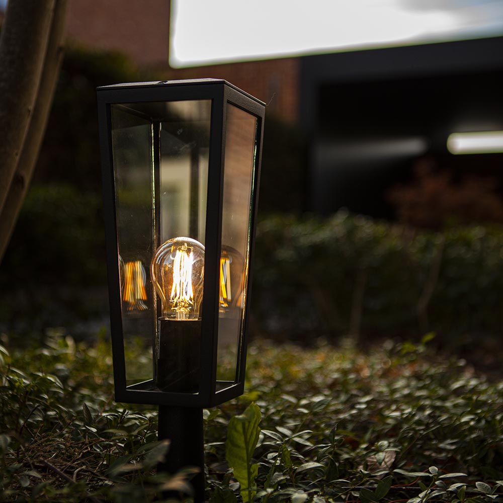 Deze kleine lantaarn op voet is ideaal voor in een border of langs het pad. De moderne buitenlamp is gemaakt van aluminium en uitgevoerd in het mat zwart. De rechthoekige lantaarn is afgewerkt met helder glas en een E27 fitting binnenin. Dit zorgt ervoor dat u zelf de lichtbron kunt kiezen en de lamp eigen kunt maken. Kies voor een decoratieve lamp of een smart lamp die past bij uw andere lampen. De zwarte buitenlamp lantaarn is IP44 goedgekeurd en kan wel tegen een stootje. Ideaal voor de Nederlandse weersomstandigheden.