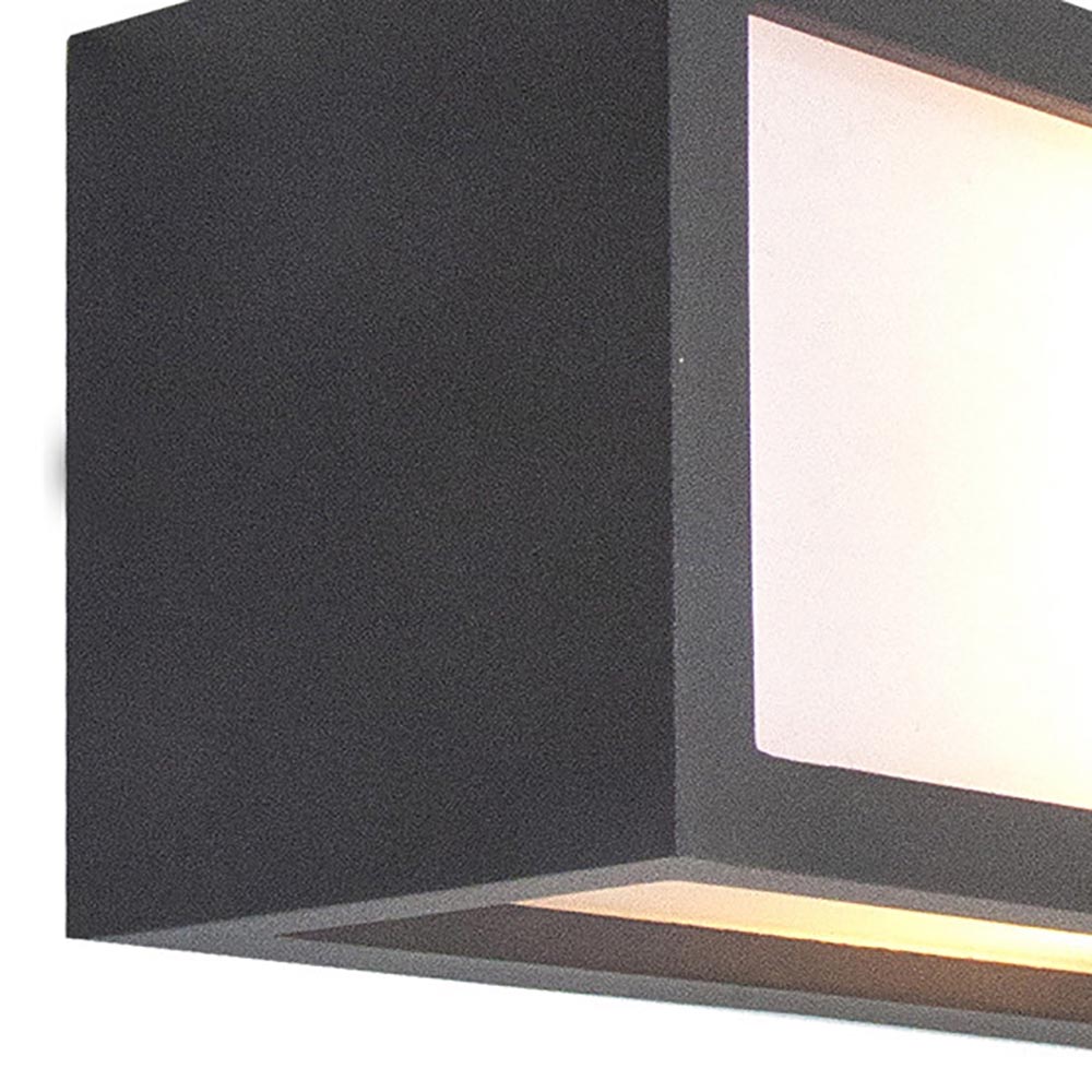 Een moderne sfeervolle wandlamp voor buiten. De wandlamp is gemaakt van een aluminium frame en is afgewerkt met een opale kap. Deze combinatie zorgt ervoor dat de lamp volledig is afgesloten en daarom ook IP65 is goedgekeurd. De rechthoekige wandlamp is voorzien van een E27 fitting, hierdoor kunt u zelf bepalen wat voor verlichting u in de wandlamp plaats. Het aluminium frame is afgewerkt in een mooie donkere antraciete kleur die mooi past bij diverse type woningen. De lamp past perfect naast een deur of schuur en zorgt voor een moderne fijne sfeer.