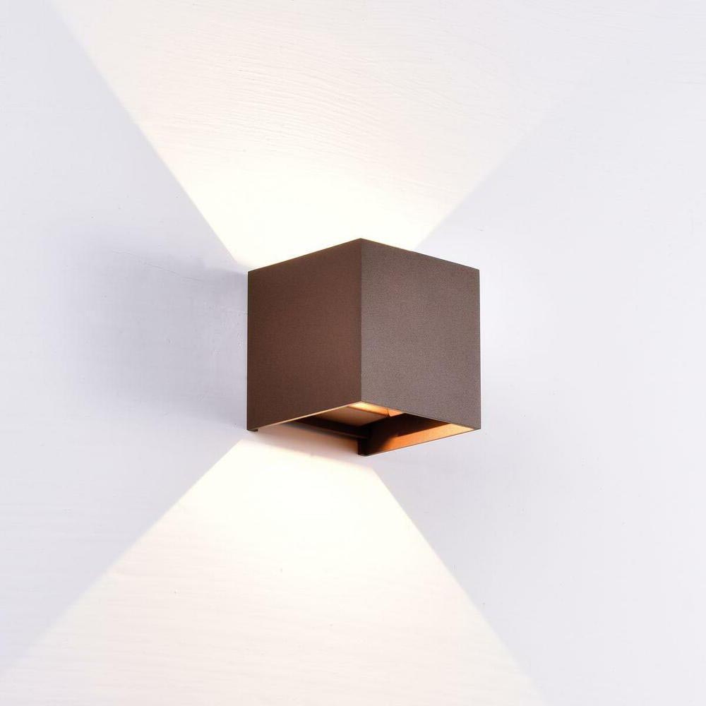 Een subtiele en sfeervolle toevoeging aan uw tuin. Deze kleine vierkante wandlamp valt overdags bijna niet op, maar ’s avonds daarentegen des te meer. De bruine aluminium wandlamp creëert een sfeervol zandloper effect op de muur of schutting en geeft dankzij z’n lumen van 1100 flink wat licht. Aan de binnenzijde kan u kiezen om het licht meer naar boven of onder te bundelen. Zo kunt u iedere wandspot los van elkaar instellen voor een speels effect door heel de tuin. De moderne buitenlamp is voorzien van geïntegreerd LED zodat deze energiezuinig is en is IP54 goedgekeurd.