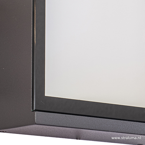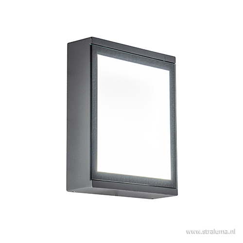 Deze moderne buiten wandlamp valt bijna niet op op de muur. Het strakke ontwerp bestaat uit een aluminium frame en is gepoedercoat in een antraciet kleur. Hij is aan de voorzijde afgewerkt met een glazen kap. De buitenlamp is voorzien van geïntegreerd LED dat in de rand van de binnenzijde is weggewerkt, dit zorgt voor een sfeervol diffuus licht. Het ontwerp maakt de antraciete buitenlamp prima geschikt voor naast de deur of bij uw schuur. De sfeervolle buitenlamp is IP54 goedgekeurd.