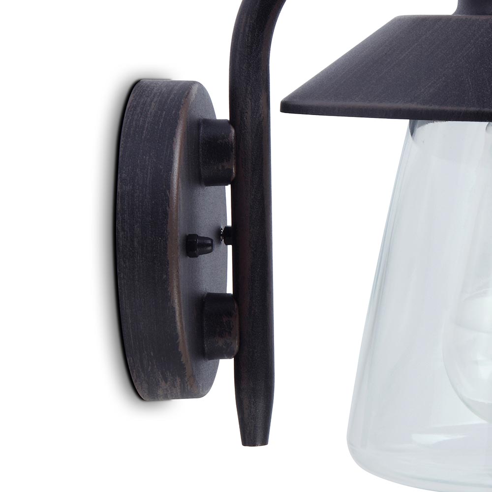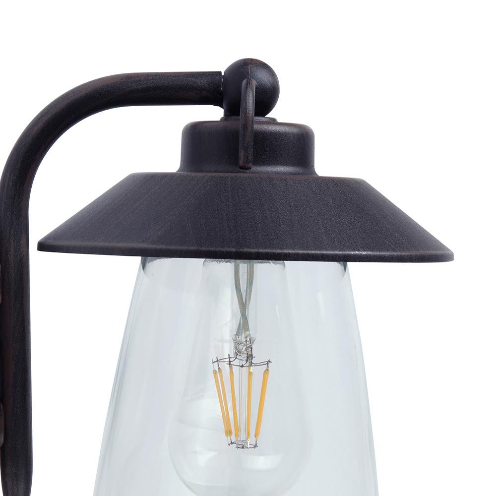 Deze prachtige buitenlamp is een verrijking voor de tuin. De lantaarn is uitgevoerd in het zwart maar heeft een verweerde, verroeste look. Dit geeft de buitenlamp een stoere robuuste look die mooi past in diverse stijlen. De buitenlamp is IP44 goedgekeurd en kan wel tegen een stootje. De lantaarn is afgewerkt met een helder glazen kap met daarin een E27 fitting. Zo kunt u zelf de lichtbron bepalen, van decoratief tot smart.