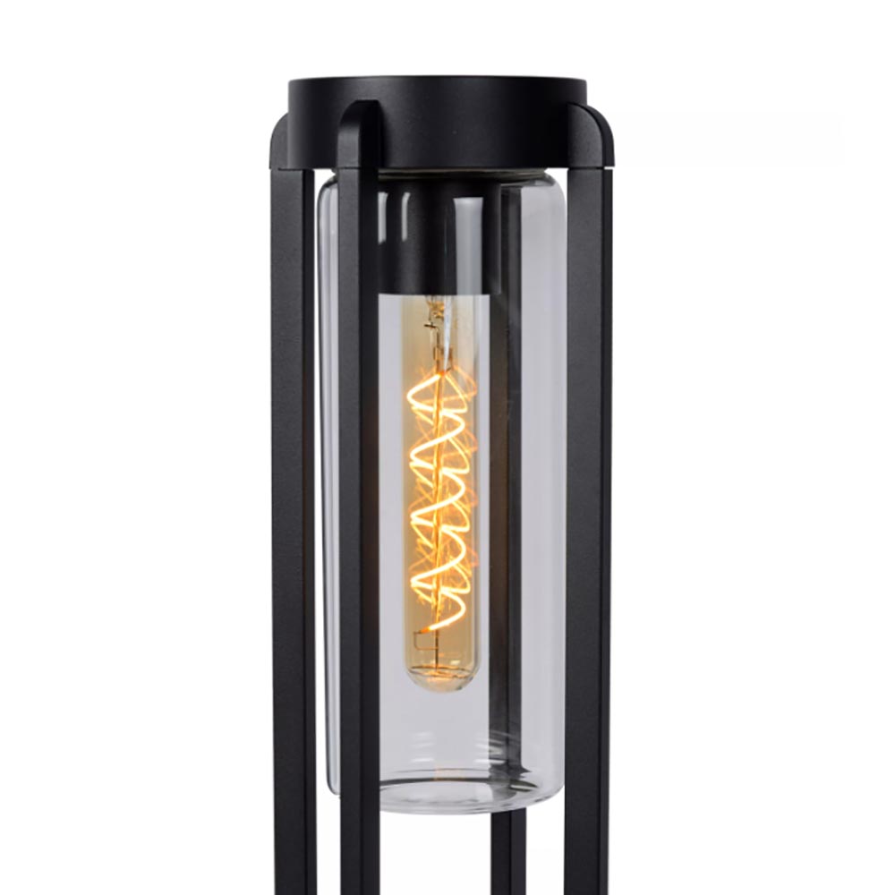 Een prachtige staande lamp voor in de tuin. De buitenlamp doet denken aan de klassieke lantaarns maar is uitgevoerd in een moderne versie. Het frame is gemaakt van metaal en uitgevoerd in het zwart. Het zwarte frame behuisd een glazen cilinder die de lamp goed afsluit. Hierdoor is de lamp IP44 goedgekeurd. De zwarte buitenlamp wordt geleverd exclusief lichtbron.