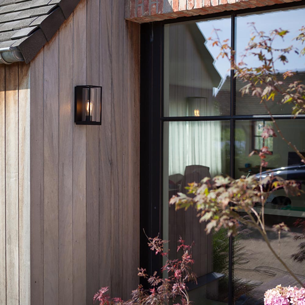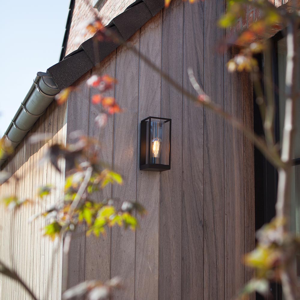 Prachtig voor bij de deur, op de schuur of in de overkapping. Deze rechthoekige buitenlamp brengt wat sfeer en warmte met zich mee. De buiten wandlamp is gemaakt van aluminium en uitgevoerd in het zwart. Het buiten armatuur is verder voorzien van een helder glazen kap met daarin een E27 fitting. Zo kunt u zelf de lichtbron kiezen die u wenst. De buitenlamp heeft een IP waarde van 44 en kan daarmee prima tegen een stootje.