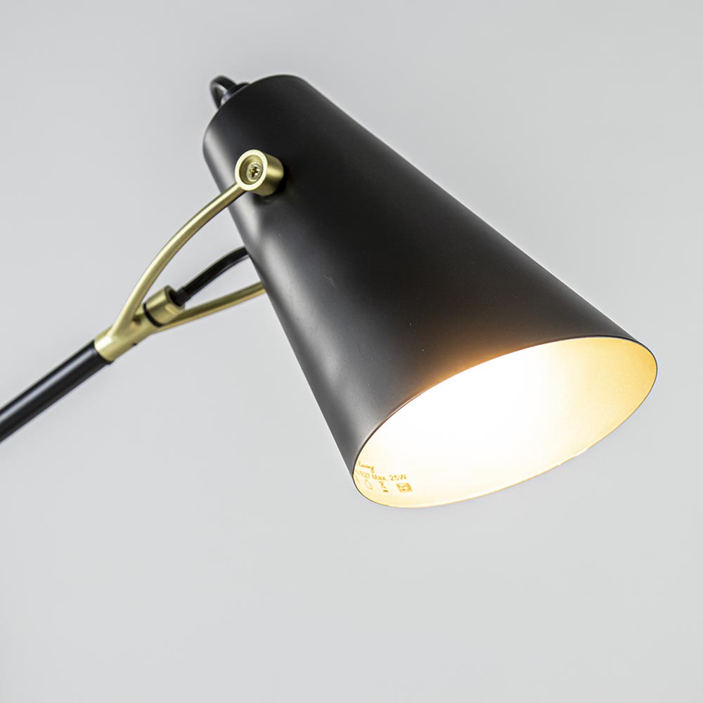– hoogte: 89,5 cm – kap: Ø11×19,5 cm – voet: Ø18×2,5 cm – metaal – mat zwart/goud – verstelbaar – exclusief lichtbron (E27) – zwart snoer: 170 cm