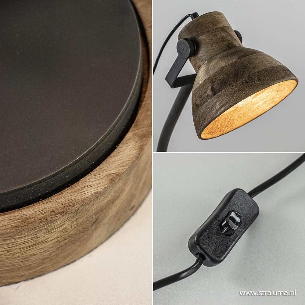 – hoogte: 64 cm – kap: Ø17×15 cm – voet: Ø18×5 cm – metaal, mat zwart – hout – zwart snoer: 185 cm, schakelaar op 90 cm – exclusief lichtbron (E27)