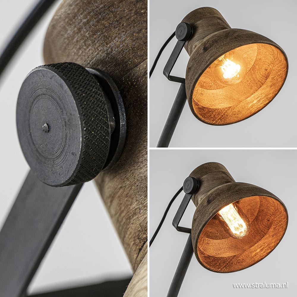 Een stoere bureau/tafellamp van Light & Living. De Imbert is gemaakt van metaal en hout. Het metaal is afgewerkt is een mat zwarte finish wat een stoere industriële look geeft. Het hout geeft de lamp een warme uitstraling die weer mooi past bij een landelijke setting. De Imbert werkt prima als bureaulamp doordat de kap is te kantelen zodat u deze naar wens kunt stellen. Ook als tafellamp is de Imbert mooi te gebruiken. De metalen lamp met hout heeft een zwart snoer van 185 cm met een schakelaar op 90 cm van de kap. De Imbert wordt geleverd zonder lichtbron (E27).