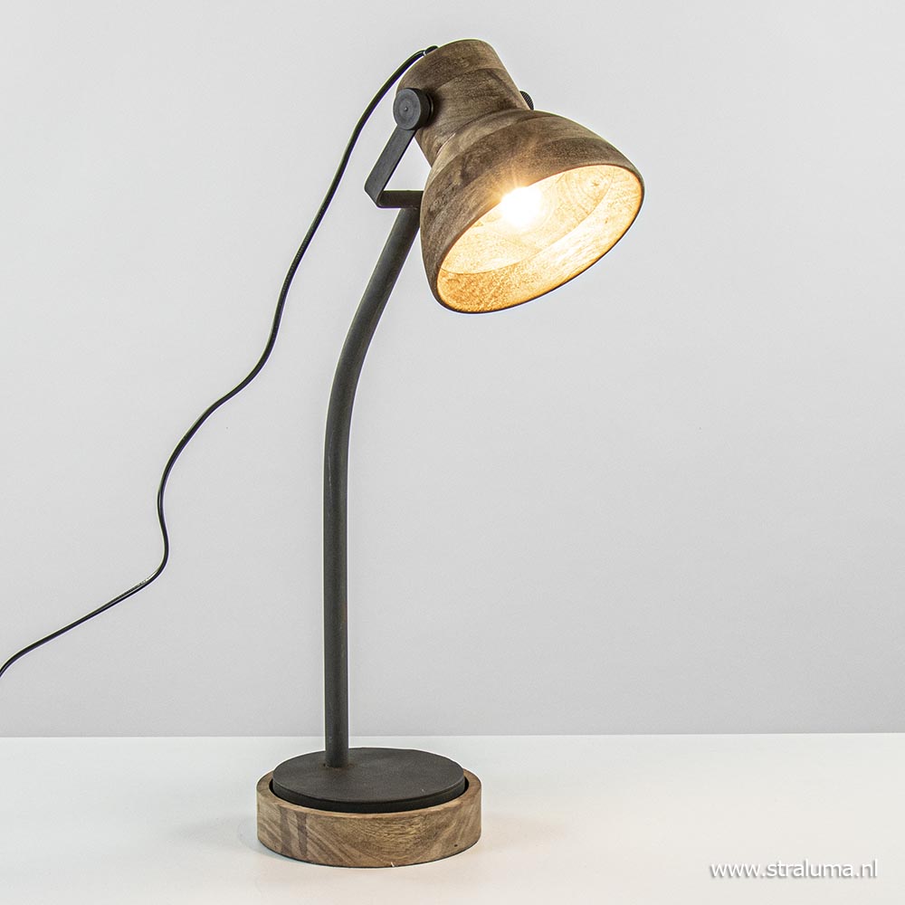 / Lampen / Bureaulampen / Bureaulamp Imbert mat zwart metaal met hout