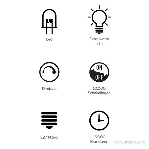 – E27 – 60 lumen – 1800 Kelvin – levensduur: 15.000 uur – 10.000 x aan/uit – dimbaar (exclusief) – afmeting Ø12,5×32,5 cm – breedte glas bij fitting 4 cm