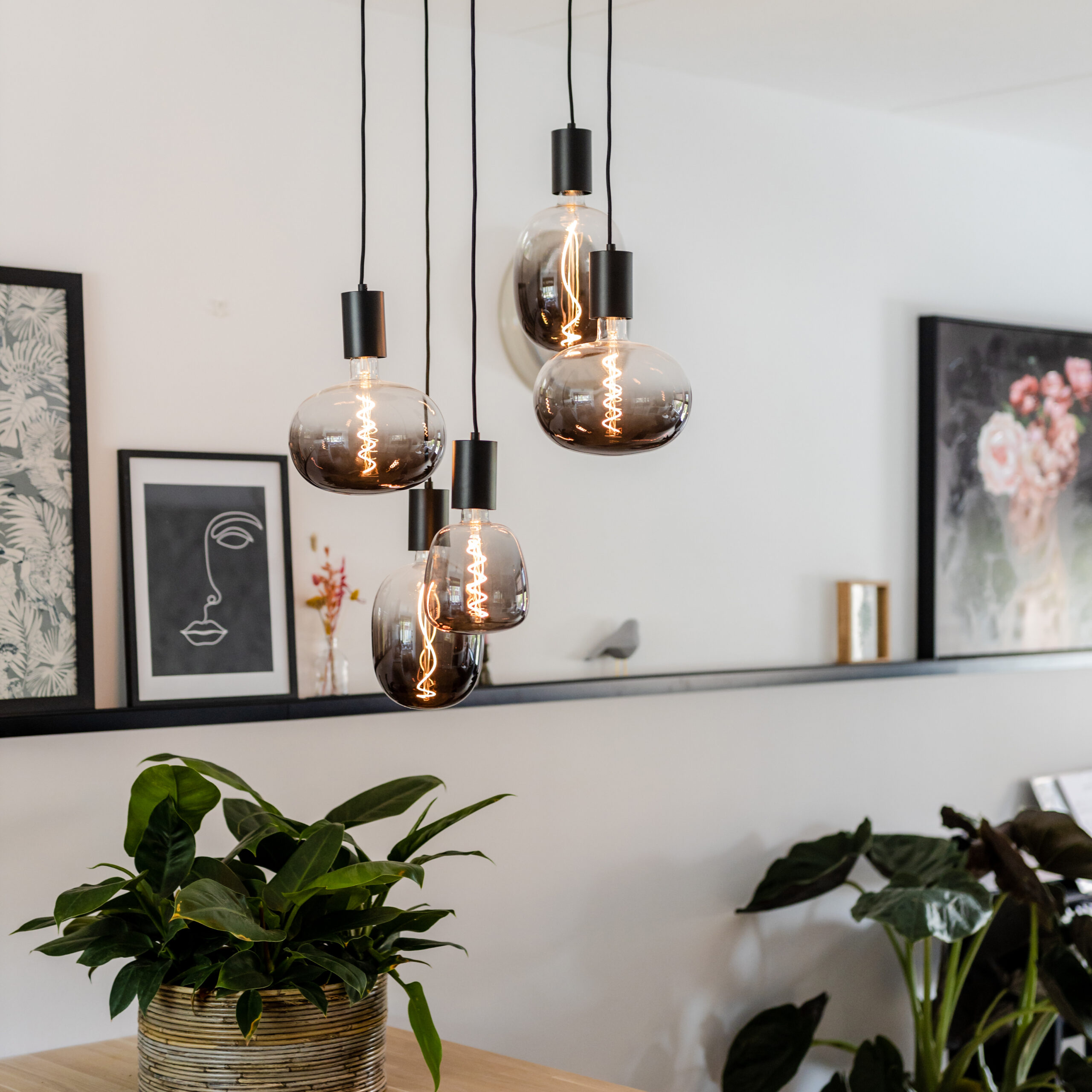 Deze moderne LED lamp maakt uw interieur helemaal af. De ovale bol heeft een zwart verloop in het glas wat de lamp een stoere moderne look geeft. De LED lamp is dimbaar en geeft met 1800 Kelvin een extra warm witte verlichting. Mooi in een tafelarmatuur of gegroepeerd met een aantal anderen in een hanglamp.