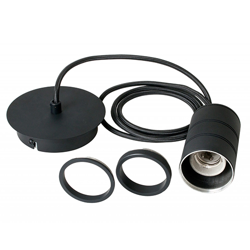 Deze mat zwarte pendel is perfect geschikt voor de XXL lampen. Ook kleinere lampen zijn geen probleem. De extra ring zorgt ervoor dat de fitting mooi afsluit. De aluminium pendel hangt aan een zwart stof omwonden snoer en wordt aan het plafond bevestigd met een ronde plafondpplaat.