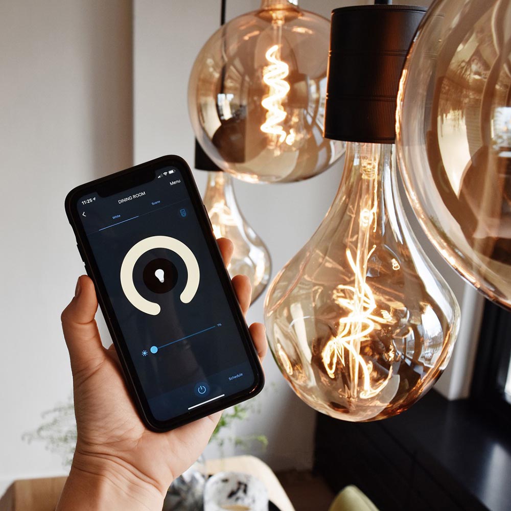 – afm: Ø20×26,5 cm – LED – E27 – 220 lumen – 1800 Kelvin – dimbaar via app