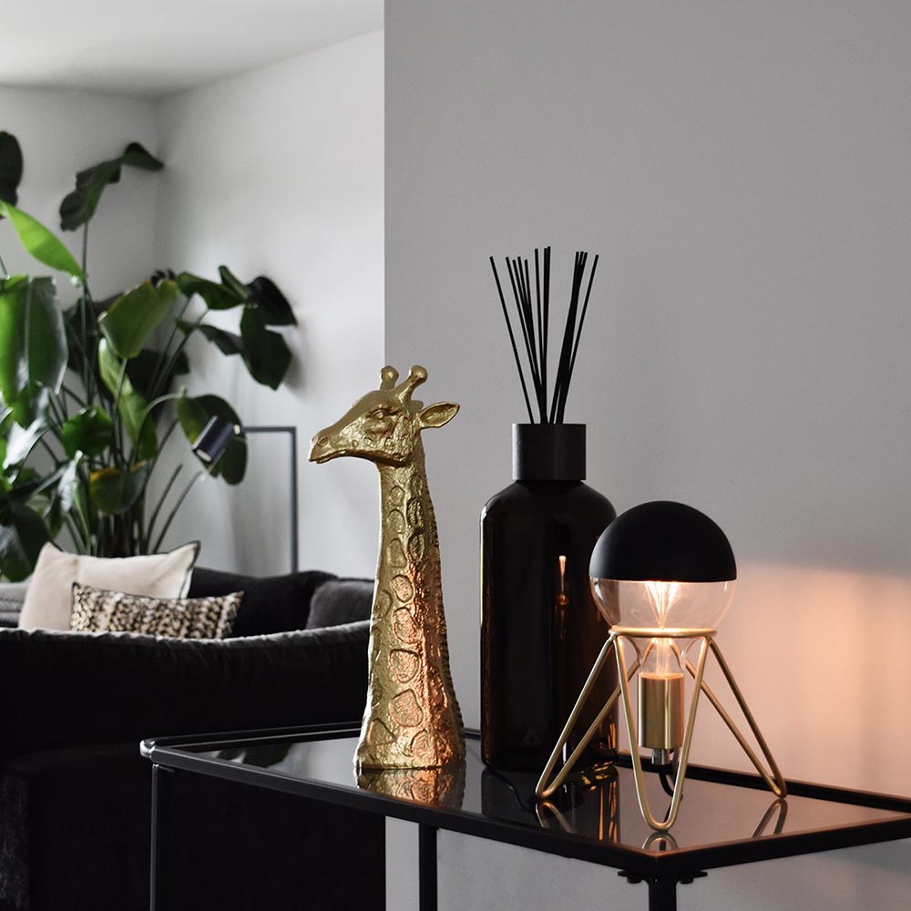 Deze leuke driepoot is een mooie toevoeging op een bijzettafel, nachtkastje of kast. De driepoot tafellamp is onderdeel van de Black and Gold collectie en wordt geleverd zonder lichtbron. Combineer het tafelarmatuur met een mooie decoratieve lichtbron om hem compleet te maken.