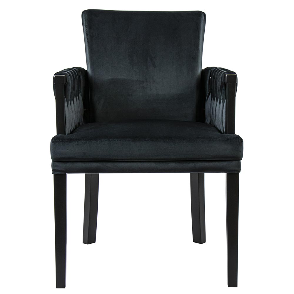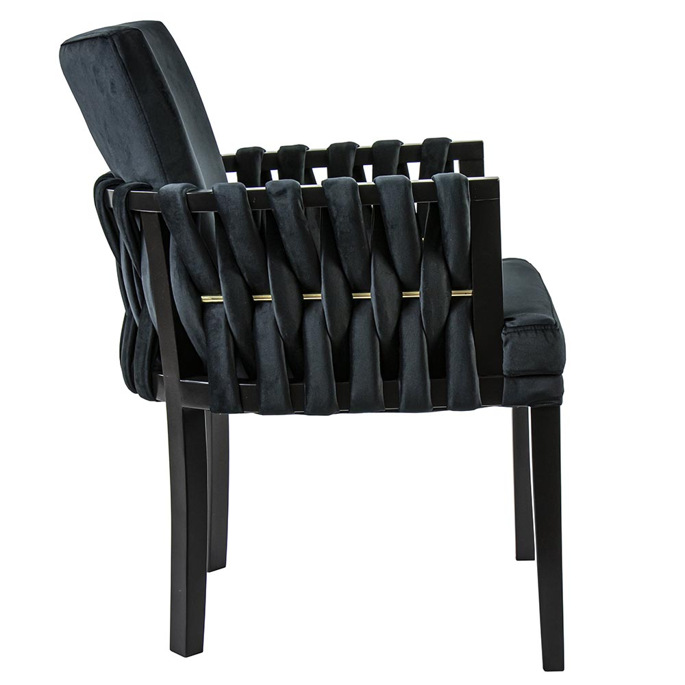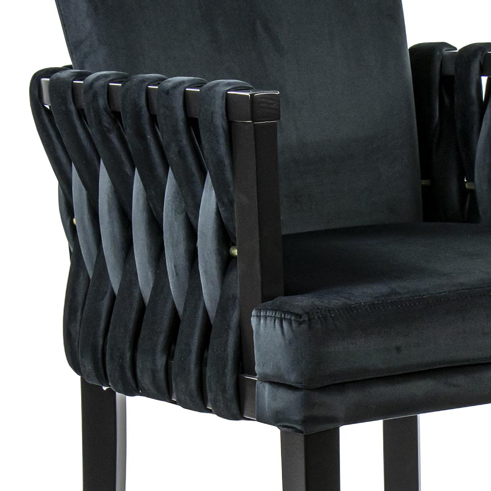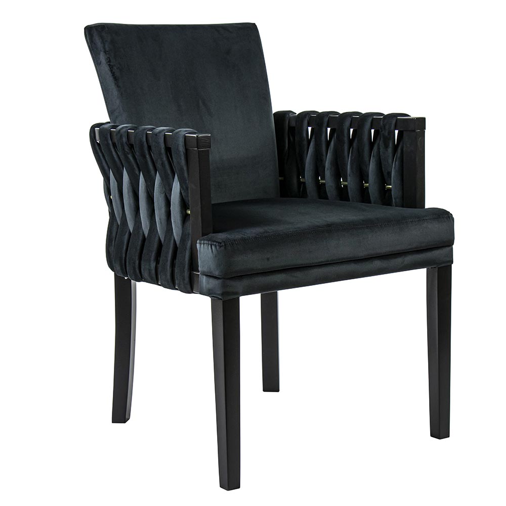 – afm: 61x62x87 cm – zithoogte: 49 cm – zitdiepte: 47 cm – zitbreedte: 50 cm – armleuning: 67 cm – materiaal zitting: stof, velours – kleur zitting: zwart – materiaal poot: hout – kleur poot: zwart – decor: goud